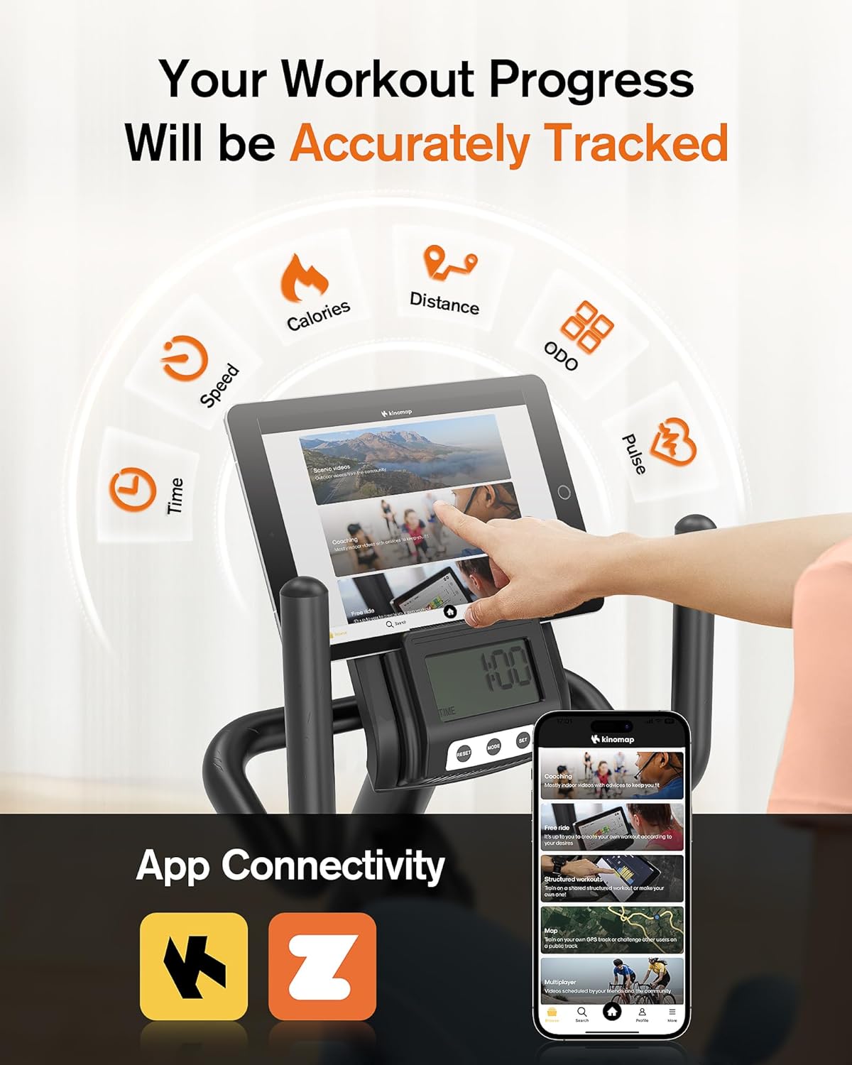• 【APP CONNECTIVITY】Zwift, fitshow and Kinomap APP provide an immersive riding experience. Seamlessly integrated partner competitions, online coaches sessions, and more. Even better is the data memory function, which can record your exercise data for a long period.