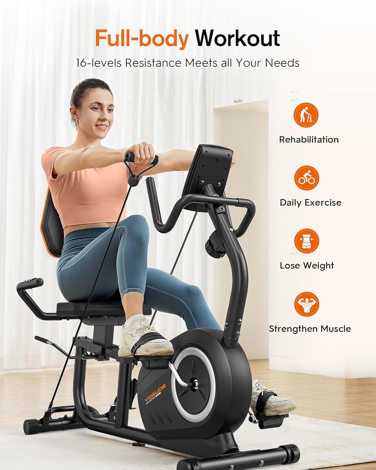 • 【CUSTOMIZE YOUR WORKOUT】With 16 levels of resistance, our bike offers double the options of other recumbent bikes, making it ideal for both beginners and professionals. Choose your perfect workout level and achieve optimal efficiency.
