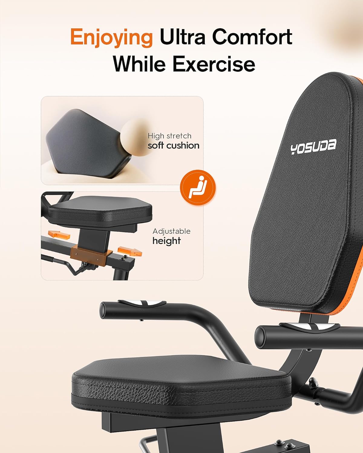 • 【SUPREME COMFORT & CONVENIENCE】Our recumbent bike features a high-density padded backrest and seat cushion, providing superior comfort during your workout. Say goodbye to the hassle of constantly getting off the bike to adjust the seat thanks to our easy-to-use seat adjustment handle.