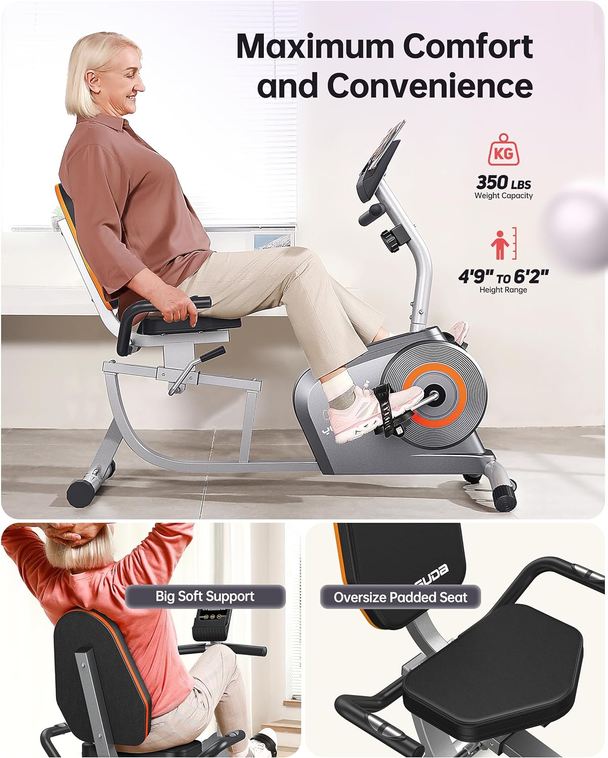YOSUDA Recumbent Exercise Bike 350LB Weight Capacity-Recumbent Bikes for Home Use with Comfortable Seat, Pulse Sensor & 16-level Resistance