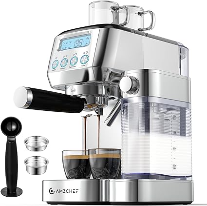 amzchef Espresso Machine with Automatic Milk Frother, 61 Ounces | LCD Display | 20 Bar | Stainless Steel | Home Gifts
