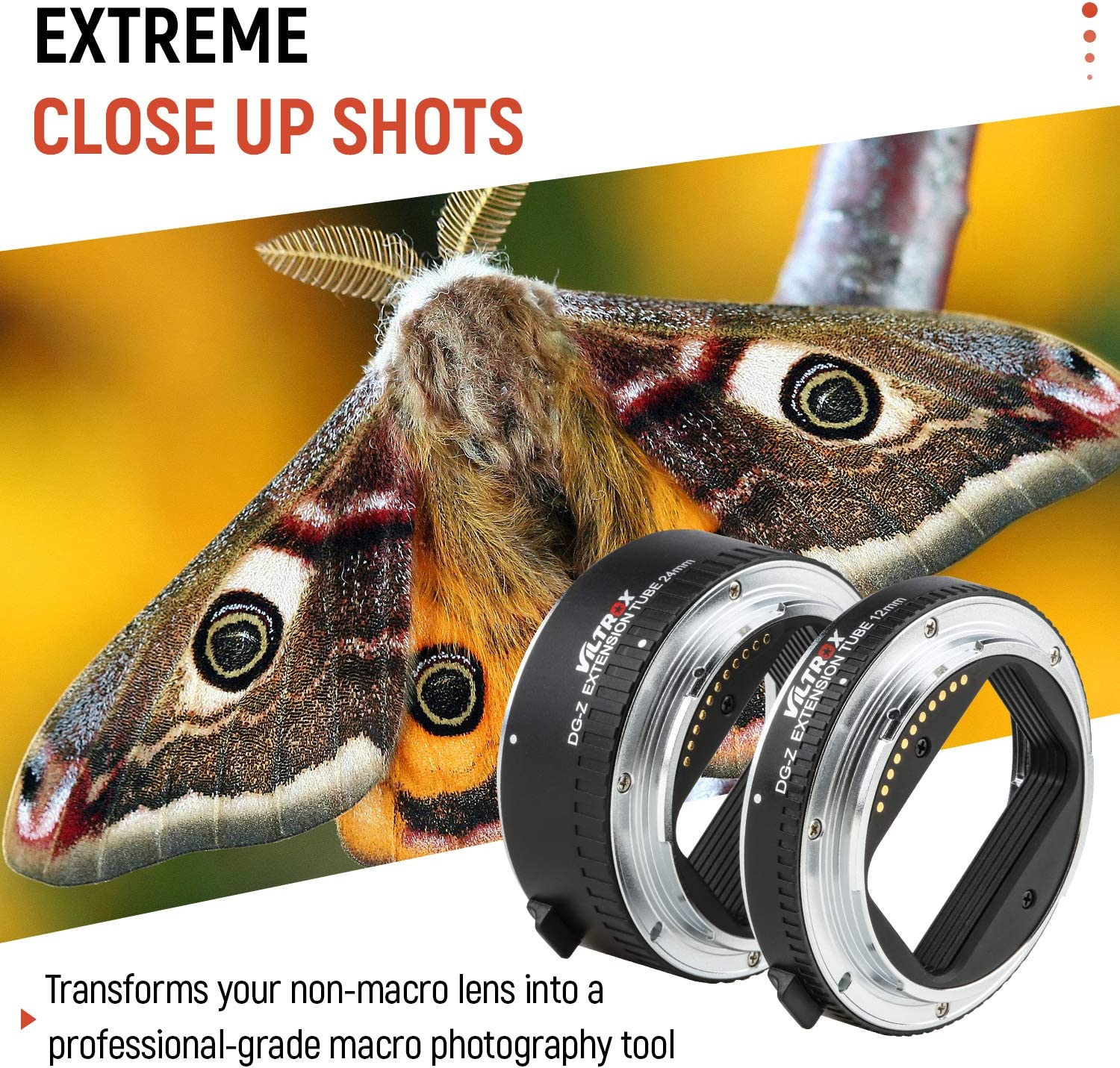 VILTROX DG-Z Automatic Extension Tube Macro Lens Adapter Ring Set(12mm+24mm) Support TTL and AE for Nikon Z Mount Z6 Z7 Z50 Cameras