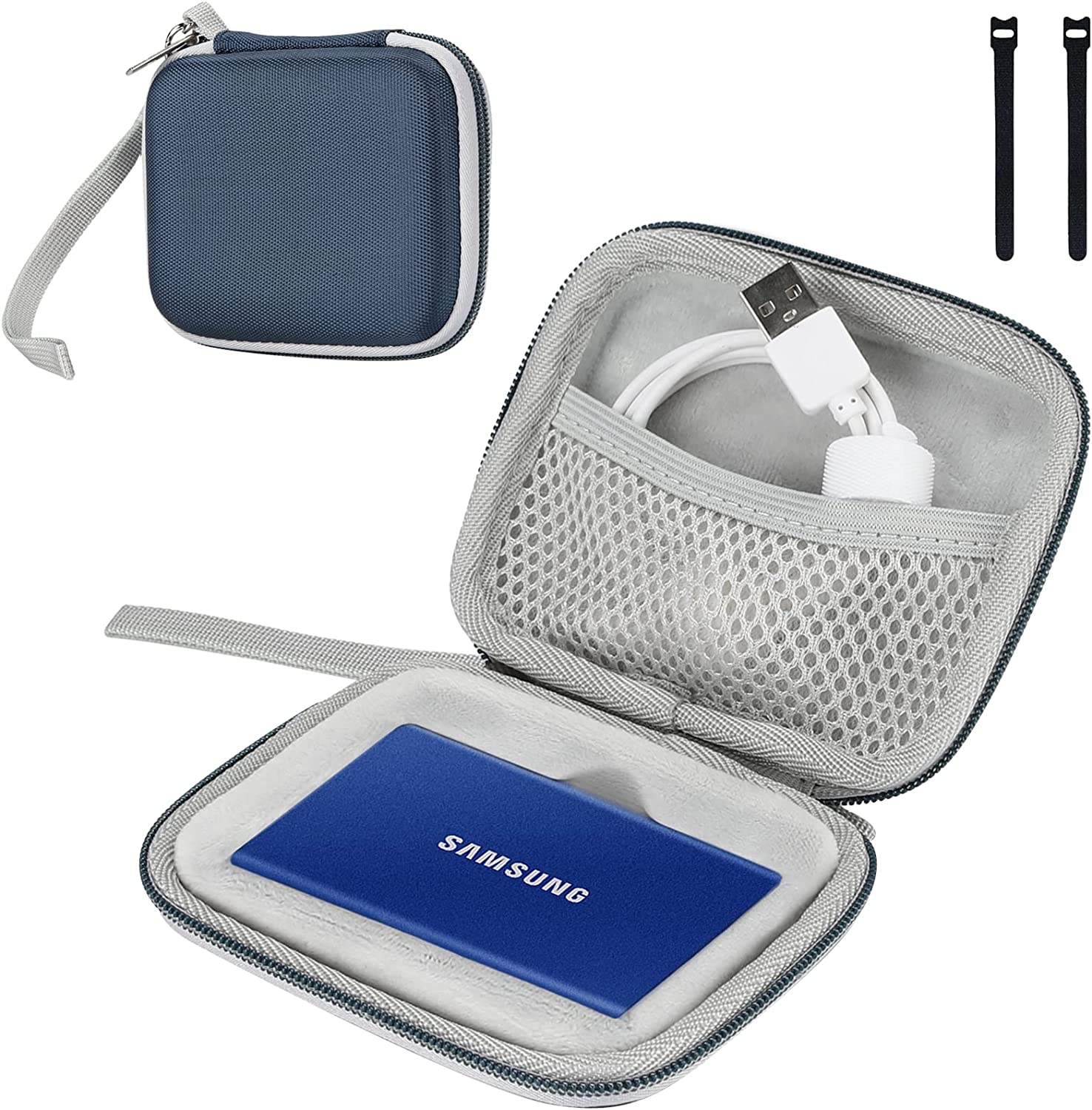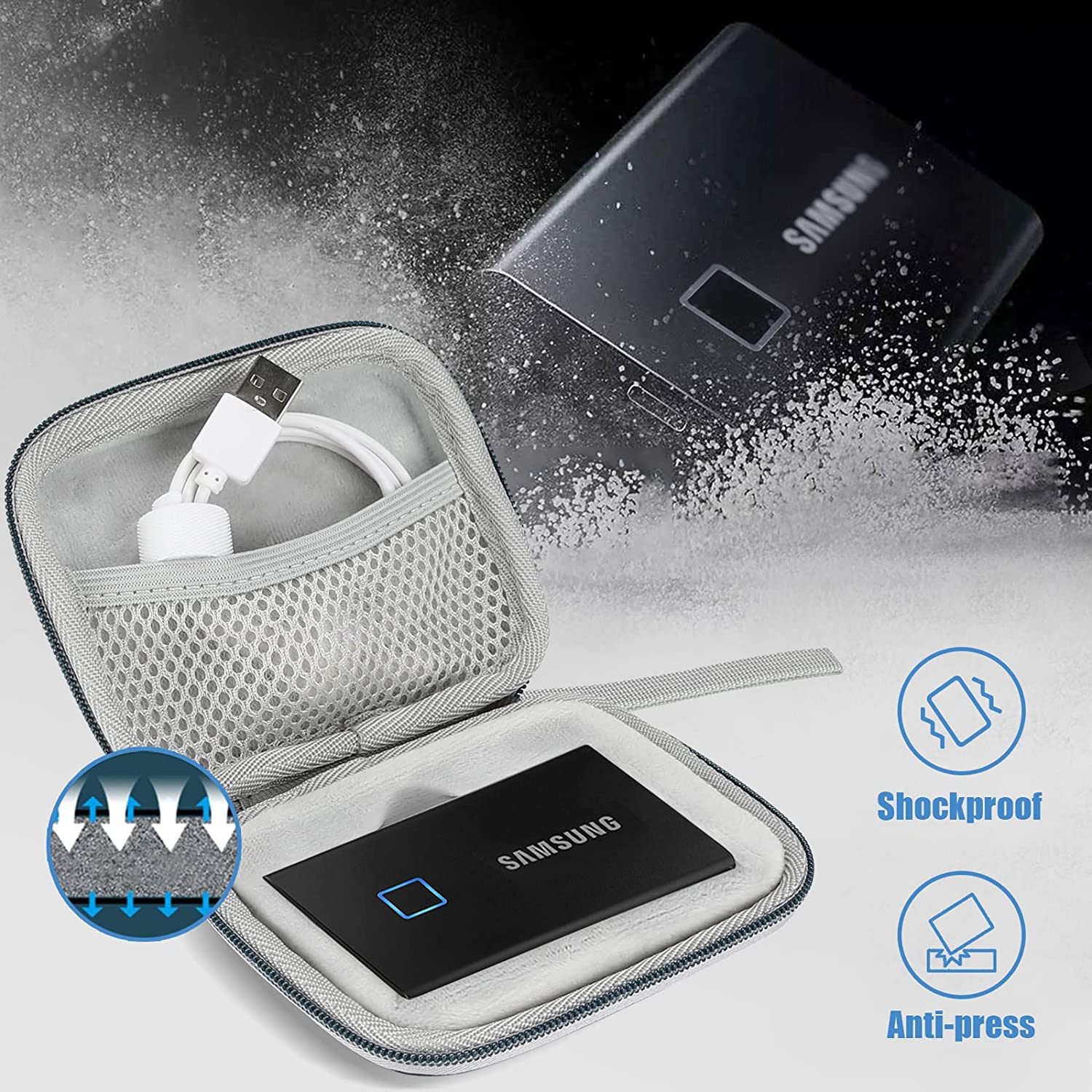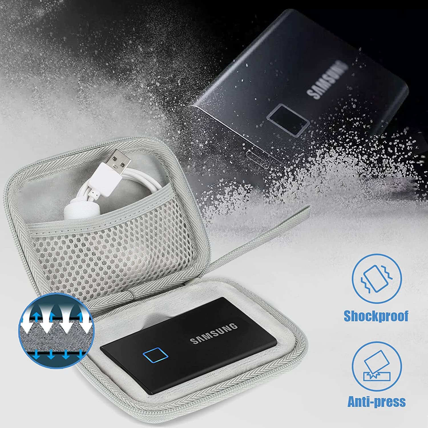 ProCase Hard Carrying Case Compatible for Samsung T7/ T7 Touch Portable SSD with 2 Cable Ties, Shockproof Travel Organizer for T7/ T7 Touch 500GB 1TB 2TB USB 3.2 External Solid State Drives -Black