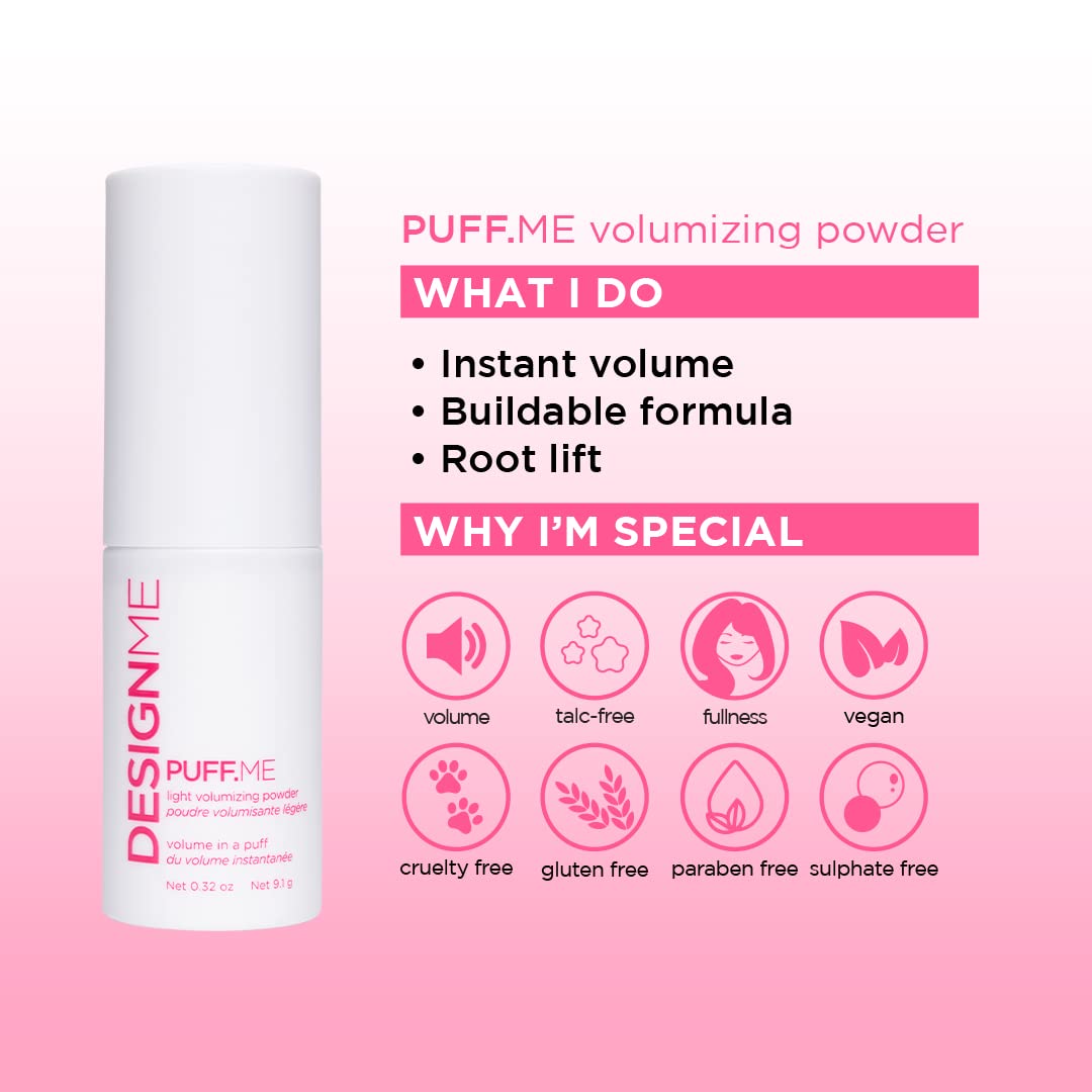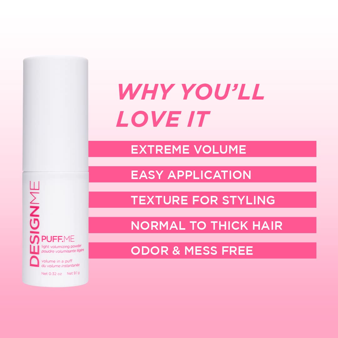DESIGNME PUFF.ME Volumizing Powder | Hair Powder Volumizer for Fine Hair | Root Lifting Hair Texture Powder for Straight, Curly, or Wavy Hair | Talc Free Hair Powder for Women, (0.32 Oz)