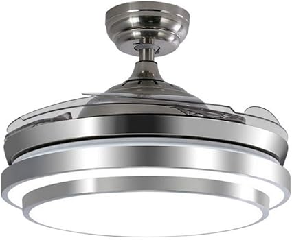 36 Inch Invisible Ceiling Fan with Lights and Remote, Modern 4 Reversible Blades Mute Ceiling Fan Chandeliers for Indoor, Bedroom Ceiling Fans Light Kit (36 Inch, Chrome-02)