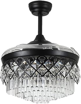 42 inch Crystal Ceiling Fans with Light Remote Control Black, Modern Luxury Chandelier Lighting Fixture Fan with 3 Speed for Bedroom Living Room