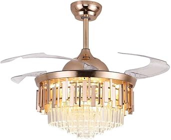 42" Luxury Crystal Ceiling Fan with Lights Retractable Blade Ceiling Fan with Remote Control Modern Fandelier Ceiling Fan Chandelier with Lighting Kits, Noise-Free and Cool Fan, Gold