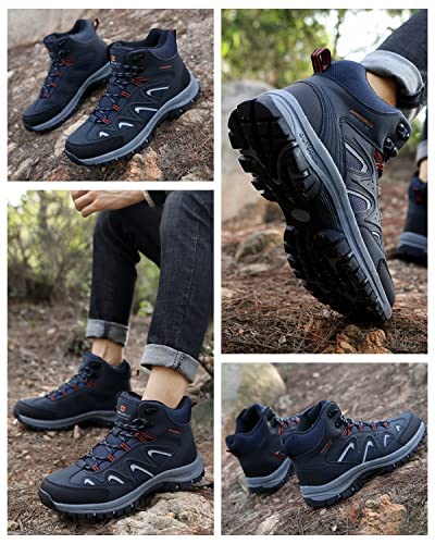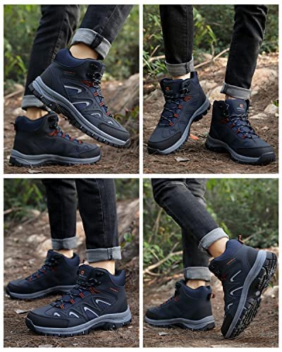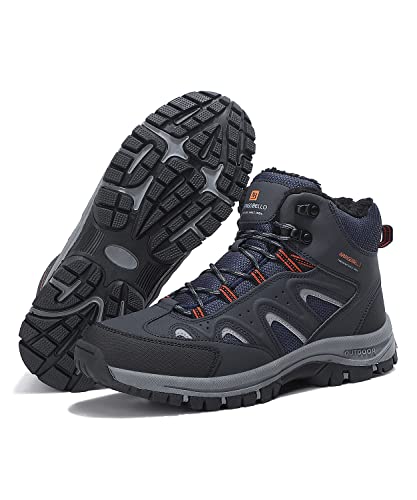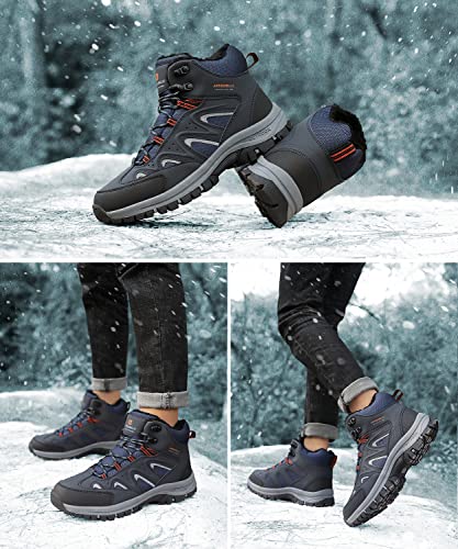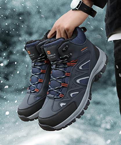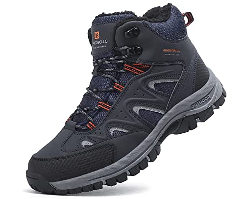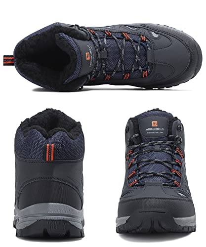 ARRIGO BELLO Snow Boots for Men Winter Boots Outdoor Hiking Shoes Lightweight Ankle Booties Leather Walking Lace Up Trekking(Blue, Size 9.5