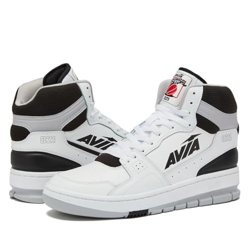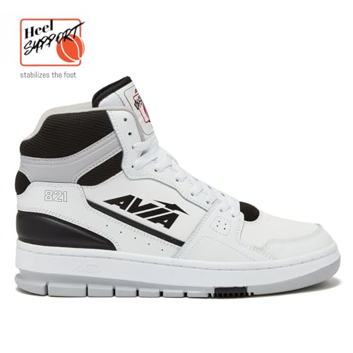 Avia 821 High Top Sneakers for Men, Indoor or Outdoor Mens Basketball Shoes - White/Black Trim, 9 Medium