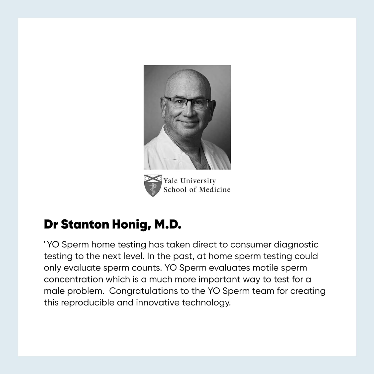 • PRIVATE, FAST & EASY - The YO Home Sperm app guides you through the testing process with simple instructions. The test takes less than 30 minutes and results include a live video of your moving sperm. Delivering a sperm sample at the doctor's office is nerve wracking and awkward, to say the least. Yo Home Sperm kit includes 2 (TWO) in home test kits. Additional refill tests are also available for repeated usage. Contact an Expert Feature Allows you to Find a Local Fertility Specialist.