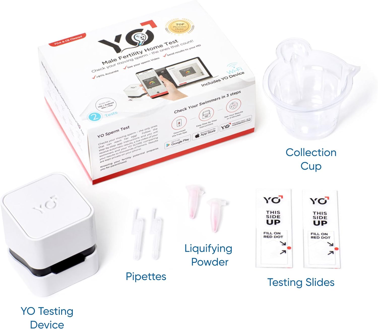 YO Home Sperm Test | at-Home Fertility Test Kit for Men | Check Motile Sperm Concentration with 97% Accuracy | Fast Results Using Your Smartphone | Includes 2 Tests | Private, Convenient, Easy to Use