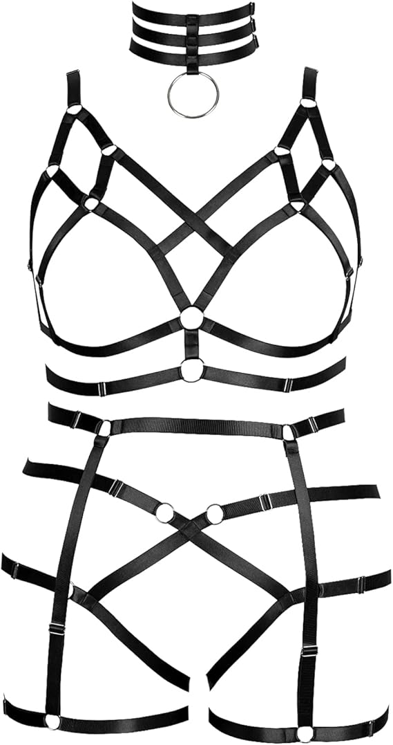 Plus size Plump Garter belt set Full body harness for women Punk Lingerie cage Large size Festival rave Gothic bra