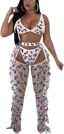 Yeshire Women's Sexy 2 Pieces Outfit See Through Crop Top and Pants Sets Mesh Cover Up Backless Jumpsuits Clubwear