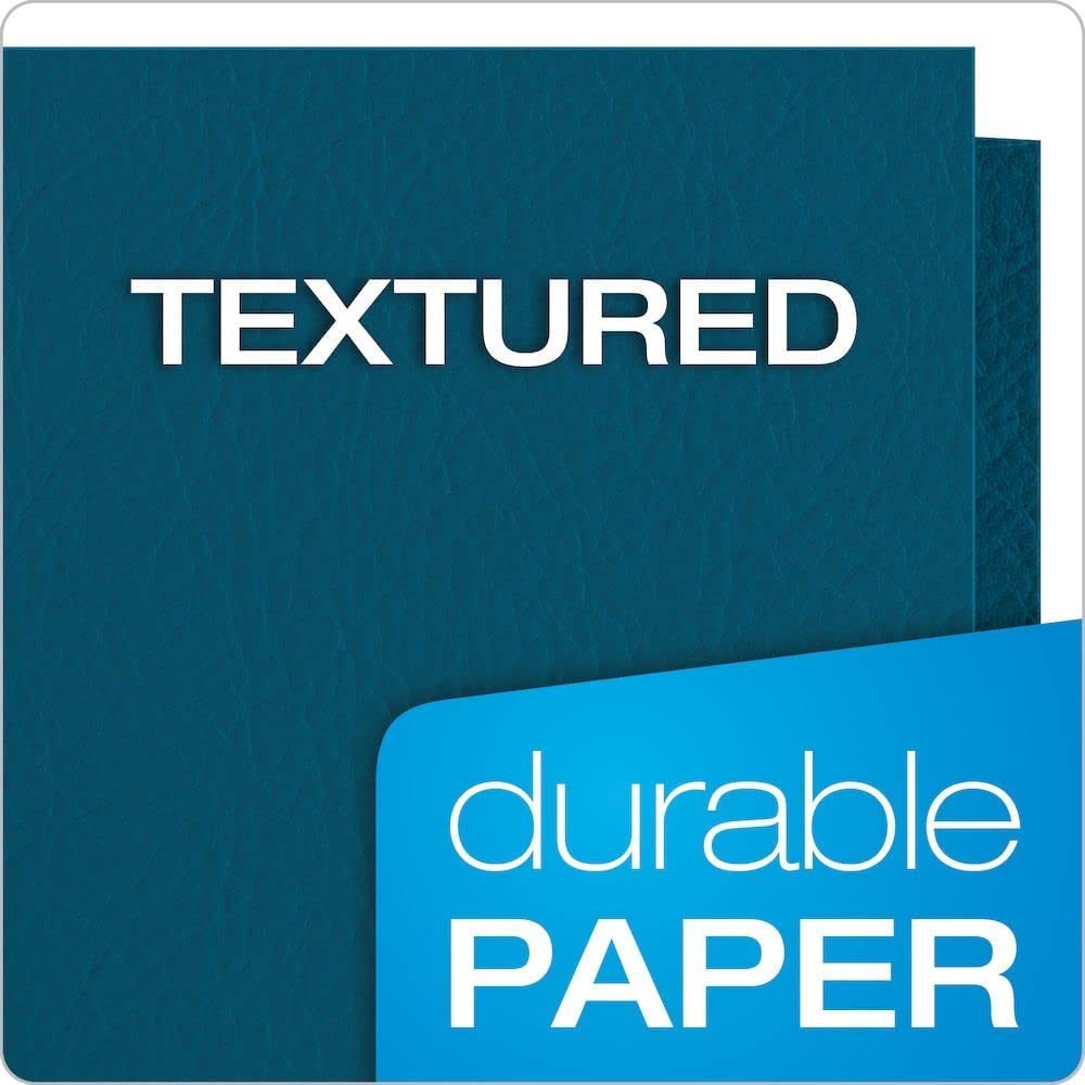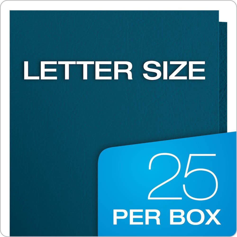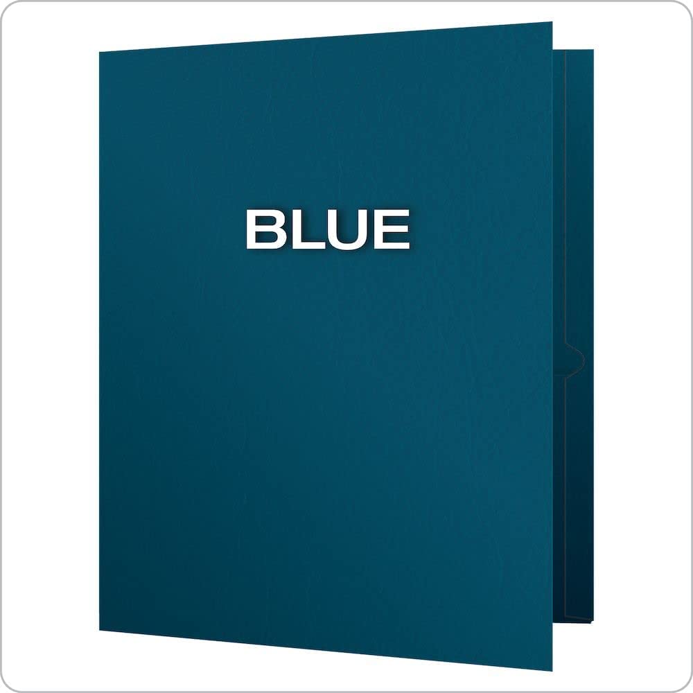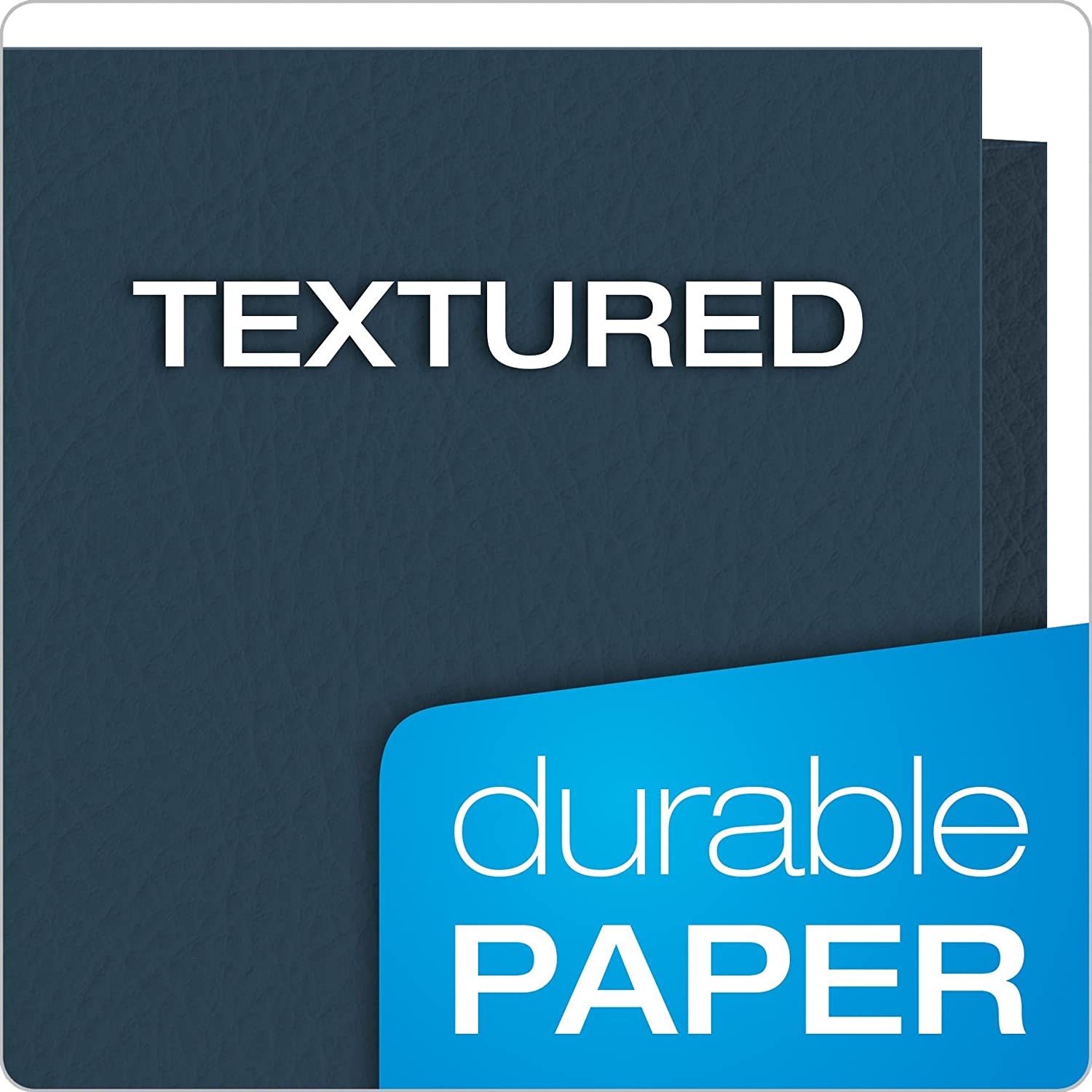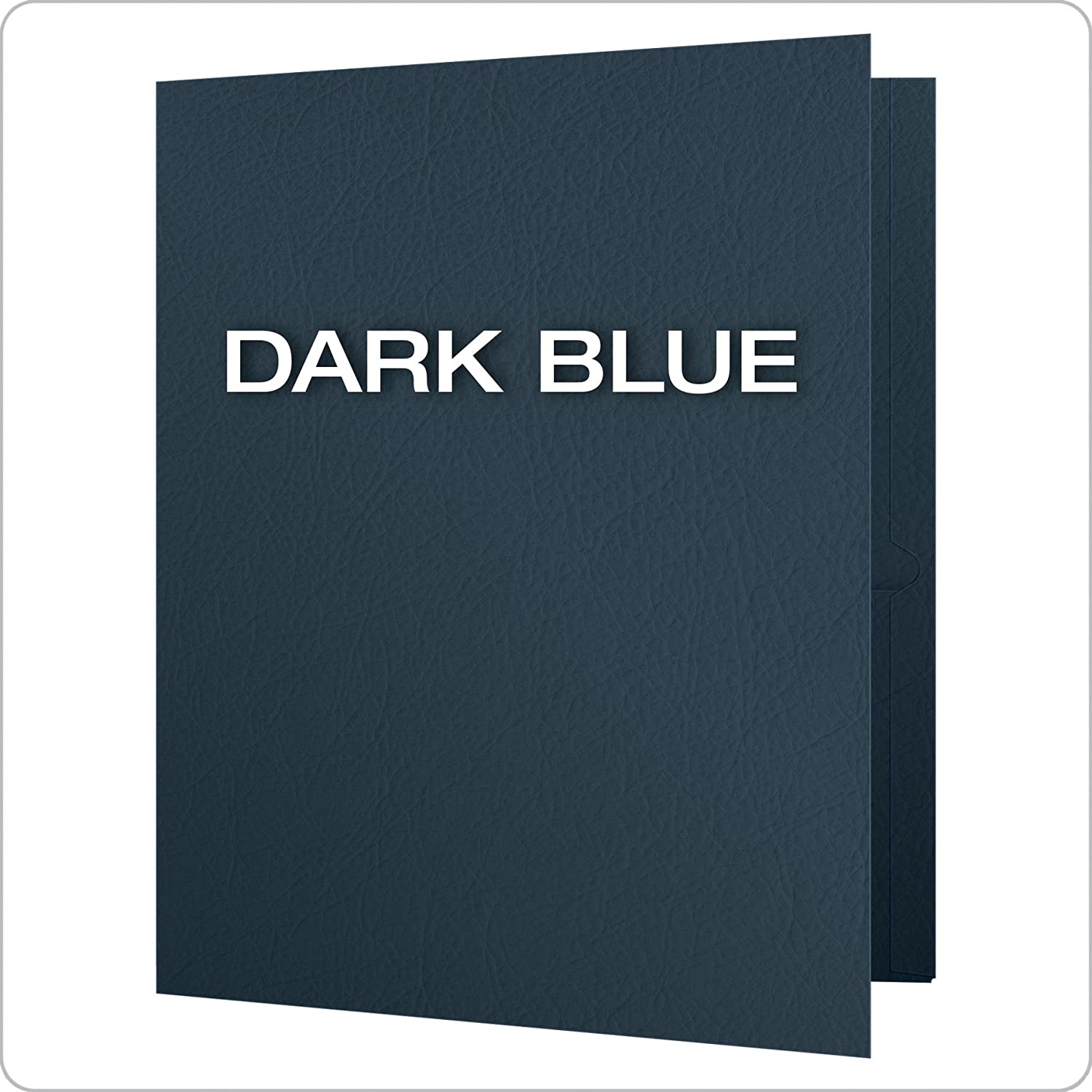 • WHAT YOU GET: Box of 25 dark blue, letter-sized, two-pocket folders made from durable, textured paper with interior die-cut business card holder