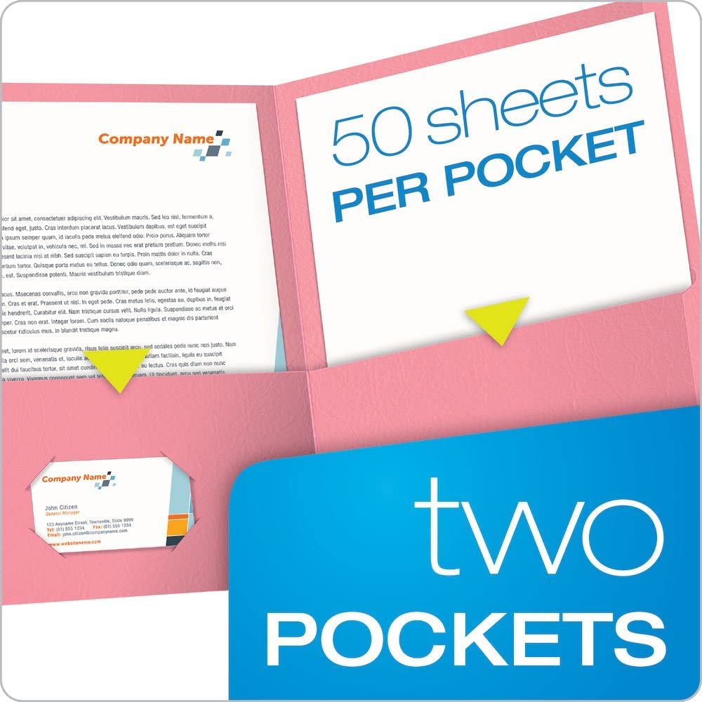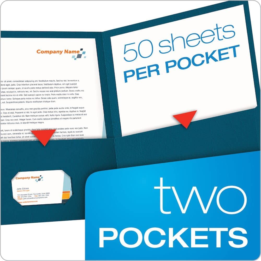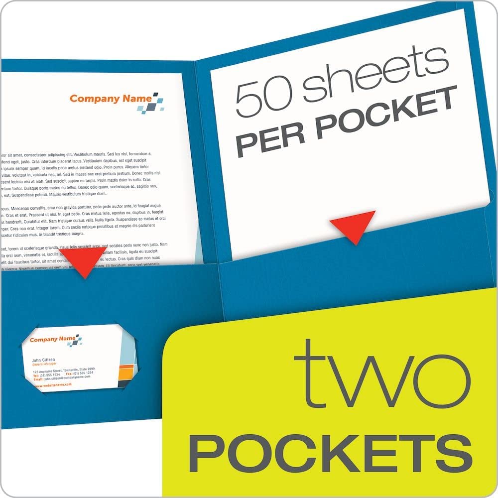 • PRESENTATION READY: Whether you’re creating conference handouts or volunteer packets, these twin-pocket folders hold up to 50 sheets in each pocket with space for a business card