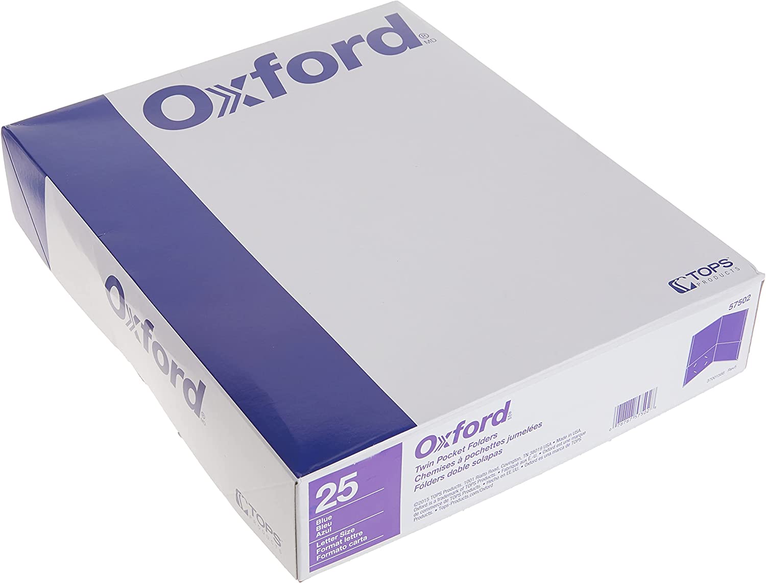 Oxford Twin-Pocket Folders, Textured Paper, Letter Size, Dark Blue, Holds 100 Sheets, Box of 25 (57538EE)