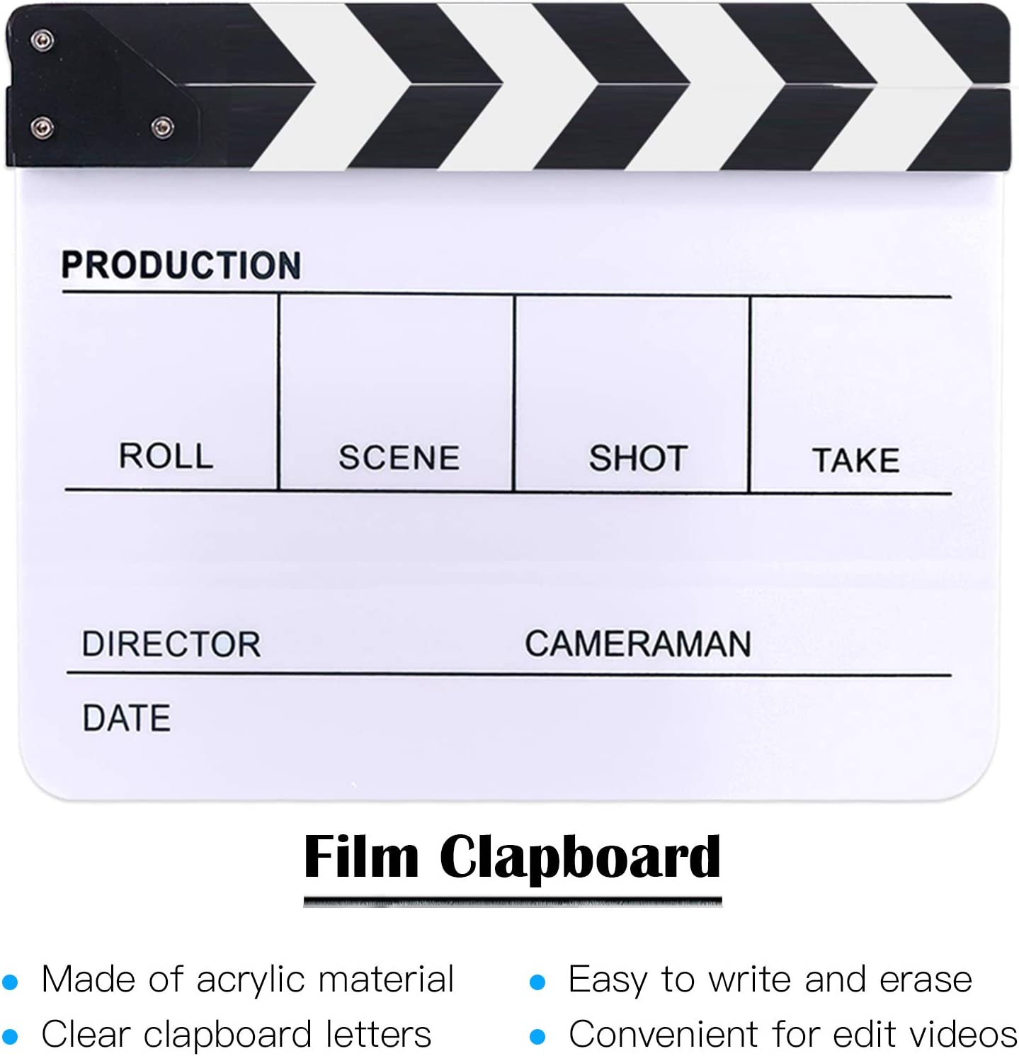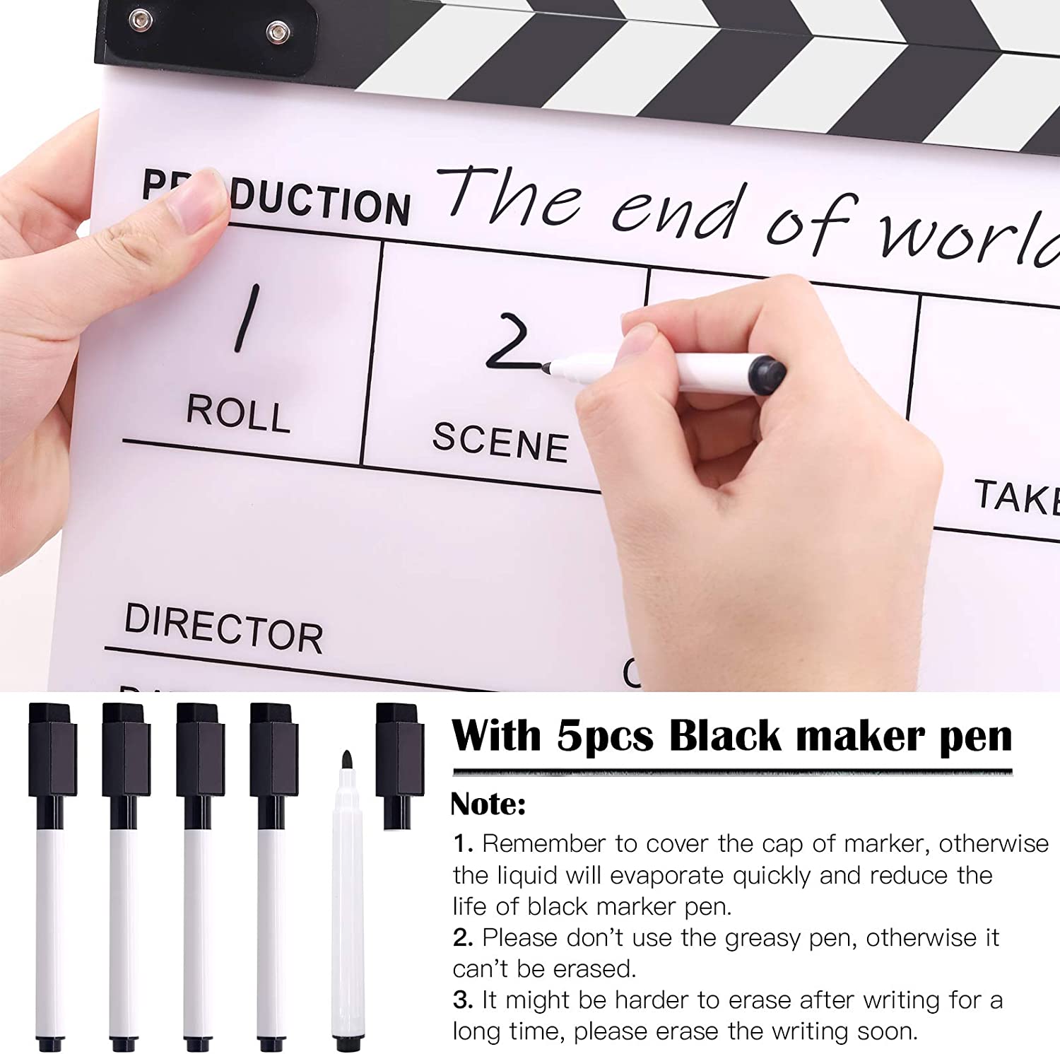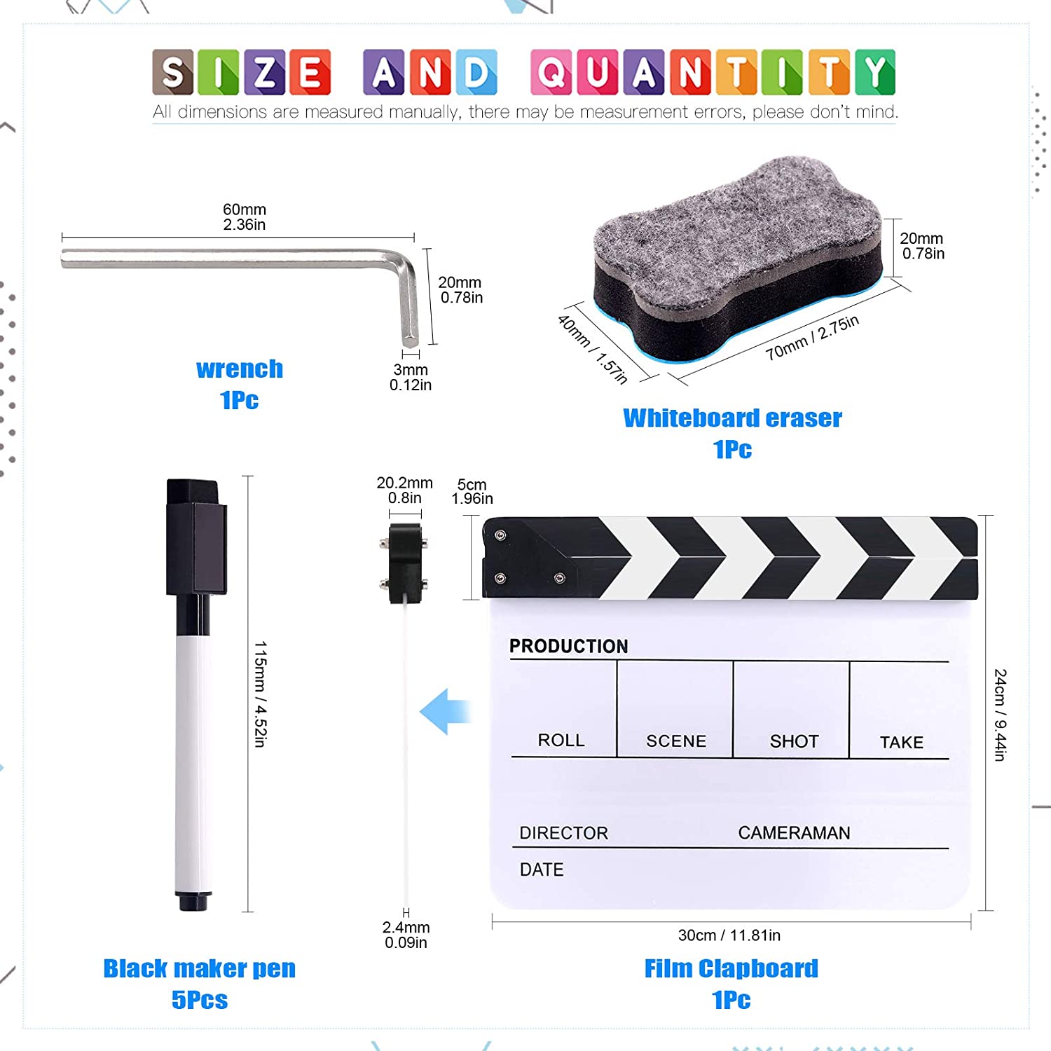 Glarks 8Pcs 10 x 12inch Acrylic Film Directors Clapboard with Marker Pens, Whiteboard Eraser and Hex Wrench Set for Film Production and Film Theme Decoration
