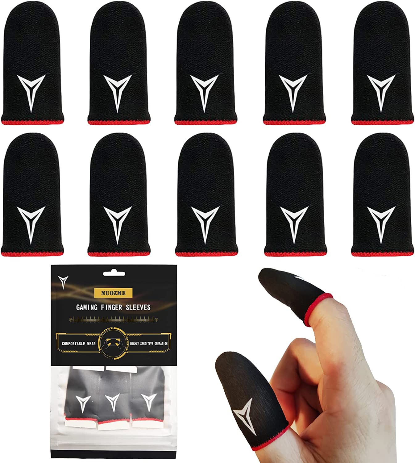 10 PCS Gaming Finger Sleeves, Nuozme Finger Sleeves Fit All Touchscreen Devices, 0.15mm Superconducting Nanofibers, Smooth Feel, Anti-Sweat, Extremely Thin, Red Edge