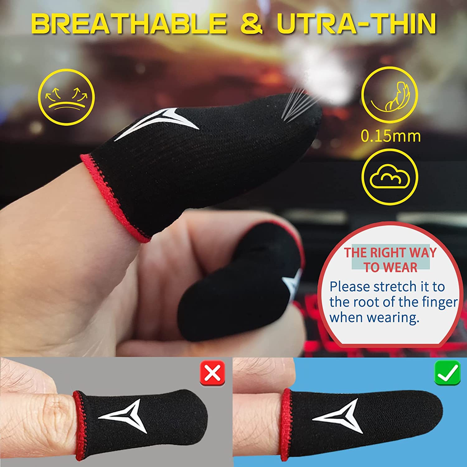 • 【Ultra-Thin& Breathable & Anti-Sweat】The thickness is reduced by 30% on the basis of the traditional design. And the thickness of our sleeves is only 0.15 mm. We have improved the thickness of the Sleeves to bring you a highly sensitive operation and comfortable gaming experience.Due to the ultra-thin and breathable feature, even sweat can be absorbed quickly and sweaty sleeves can dry quickly without affecting your operation.