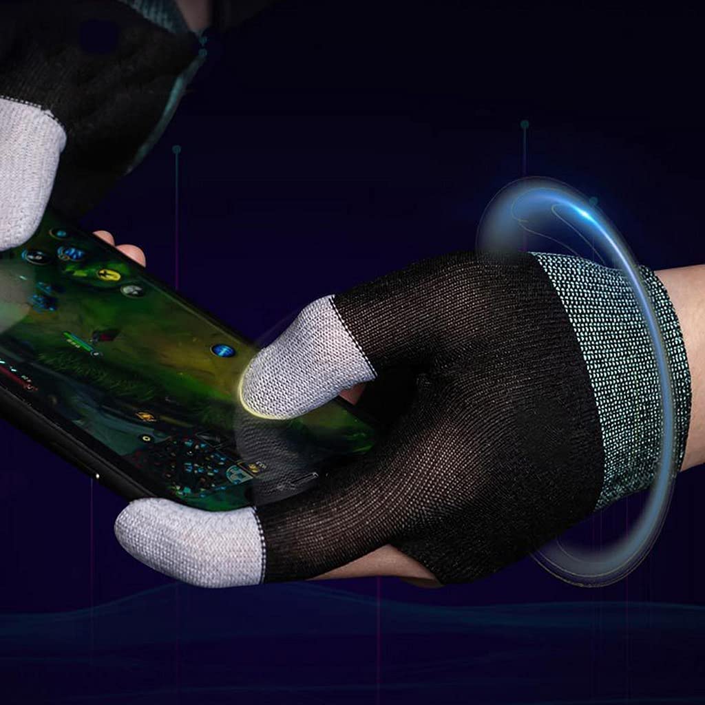 Features:100% brand new and high quality Gloves are finely knitted nylon, silver fiber finger is as light as anything when worn in the hand. The thin, lightweight material provides great breathability and resists sensual heat. It uses high scale silver fiber in the finger part, which is highly sensitive, super conductive, and has an e-sports experience at your fingertip. Gloves are very breathable and can absorb sweat, which is excellent for sweaty fingers. The unique design of dot silica gel palm non-slip design, prevent the mobile phone from falling out. The constant friction greatly reduces the resistance caused by the fast sliding screen, improves the sensitivity effectively , and the touch screen response is clear and continuous. These gaming gloves support almost all mobile games on mobile phone, including pubg, call of duty, etc. Specifications:Type Of Merchandise; Finger Sets Applicable Products: Mobile Games Material: Carbon Fiber + Heating Wire + Spandex Product Size: Free Size Product Weight: 25g Product Color: Black and Gray Note:Please allow 0-1cm error due to manual measurement. Make sure you do not mind before you bid. Due to the difference between different monitors, the picture may not reflect the actual color of the item. Thank you!Package includes:2 x Gloves.