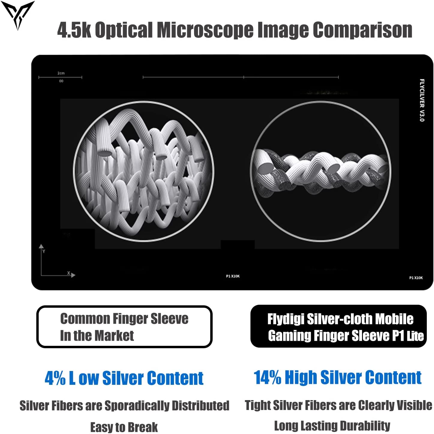 Flydigi P1 Lite 10 Pair Silver-Cloth Mobile Gaming Finger Sleeve, Exclusive Custom FlySilver Superconducting Silver Cloth, 0.3mm Extremely Thin Material, Zero Touch, Breathable, Extremely Sensitive