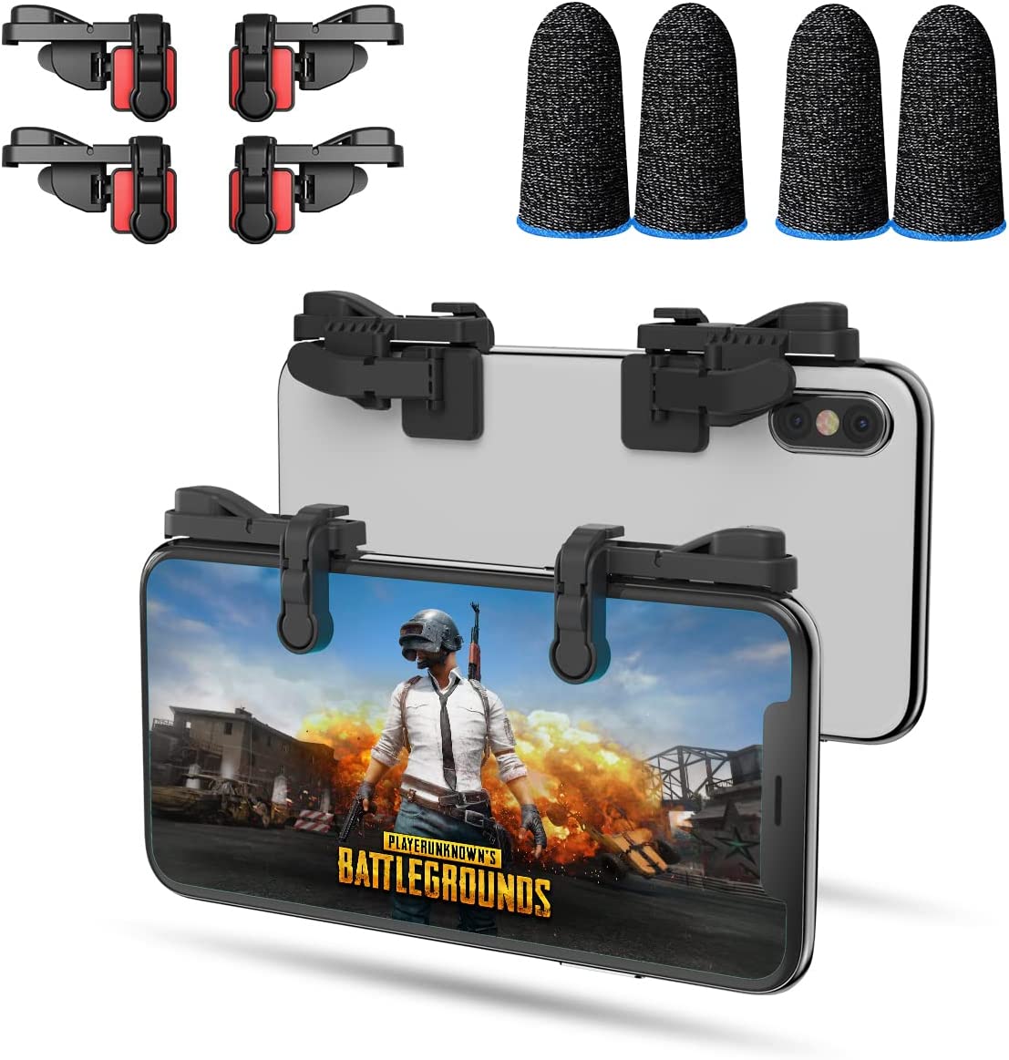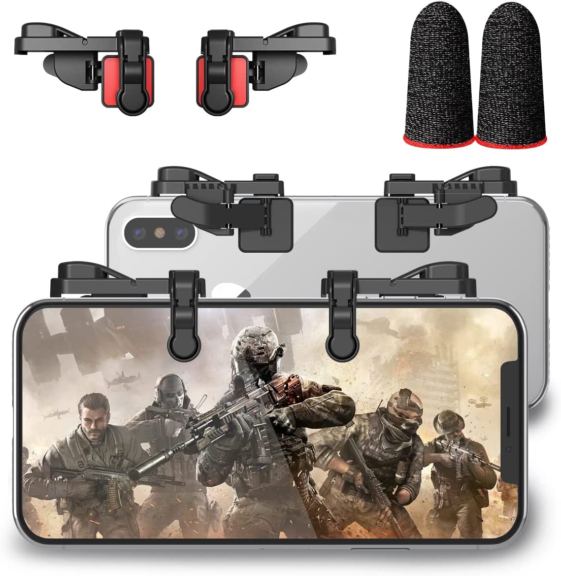 Mobile Game Trigger, Mobile Gaming Controller Compatible with PUBGG/Fortnitee/Call of Duty Mobile, IFYOO Z108 Aim & Fire Triggers for iPhone and Android Phone, 2 Pair with 2 pcs Finger Sleeves Red