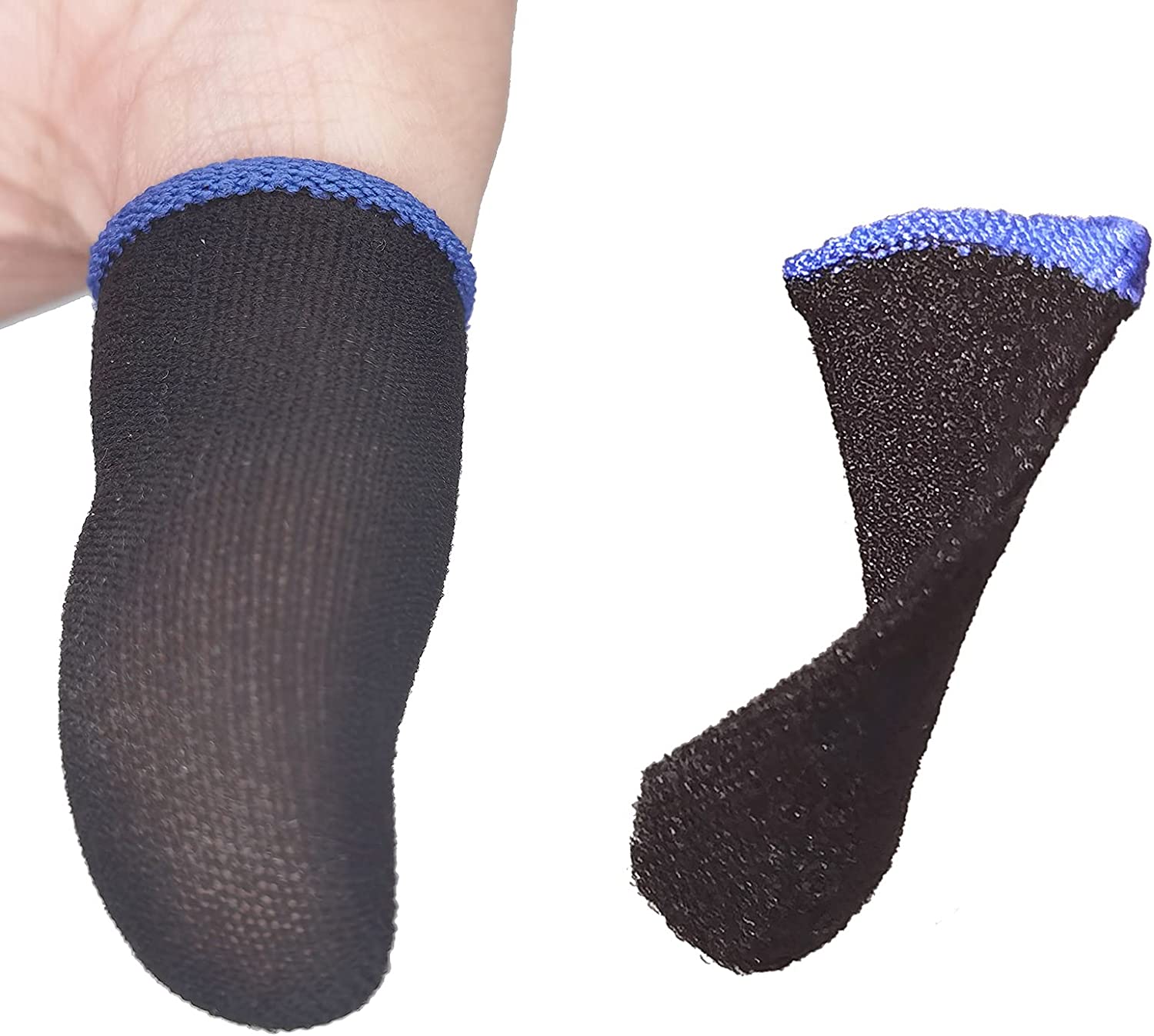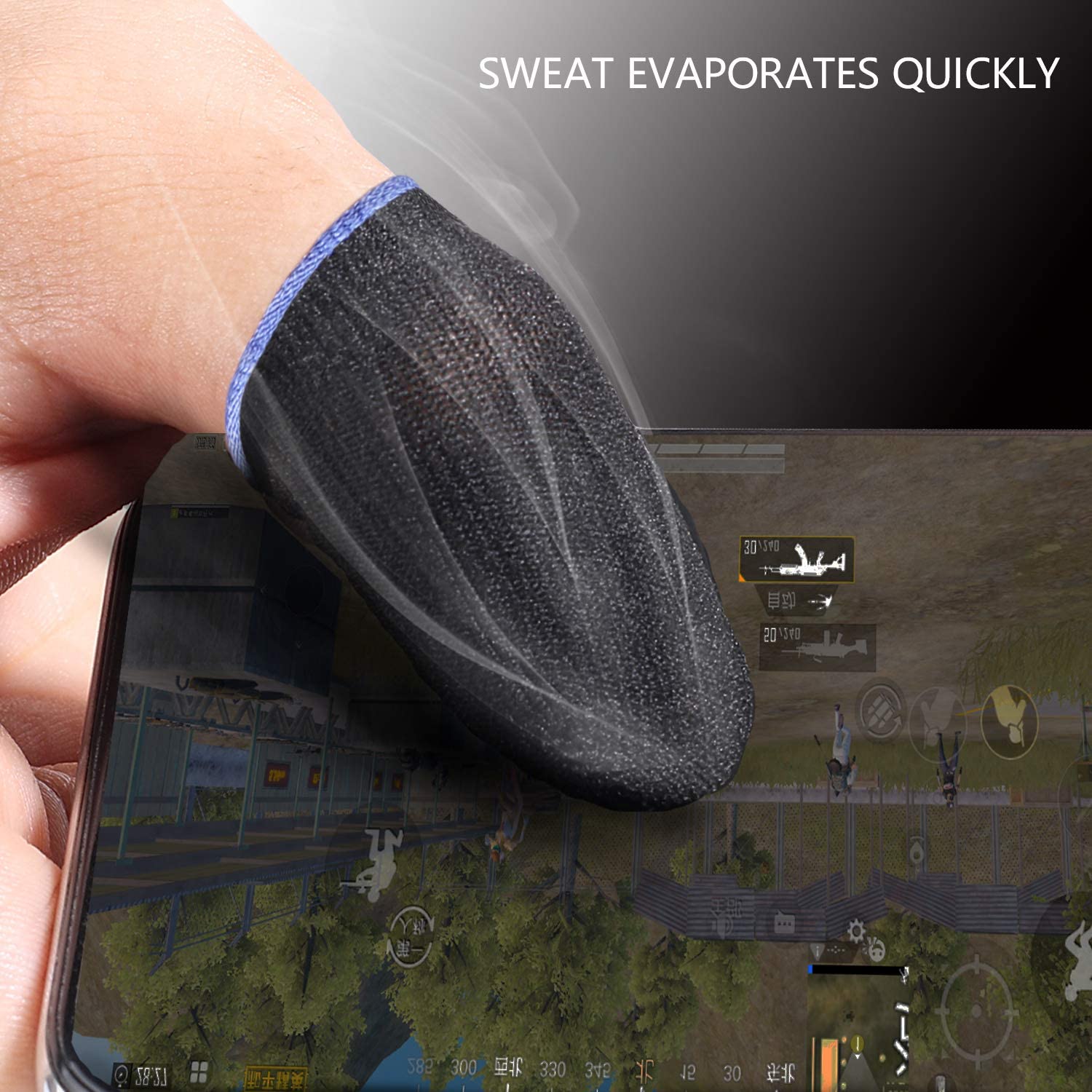 MOMOFLY 150 Second Quick Dry Ultra-Thin Carbon Fiber (16 PCs) Gaming Finger Sleeves Touch Screen Anti-Sweat Shoot Aim Finger Cot for PUBG Mobile, Mobile Gaming, Android iOS Tablet (Bule)