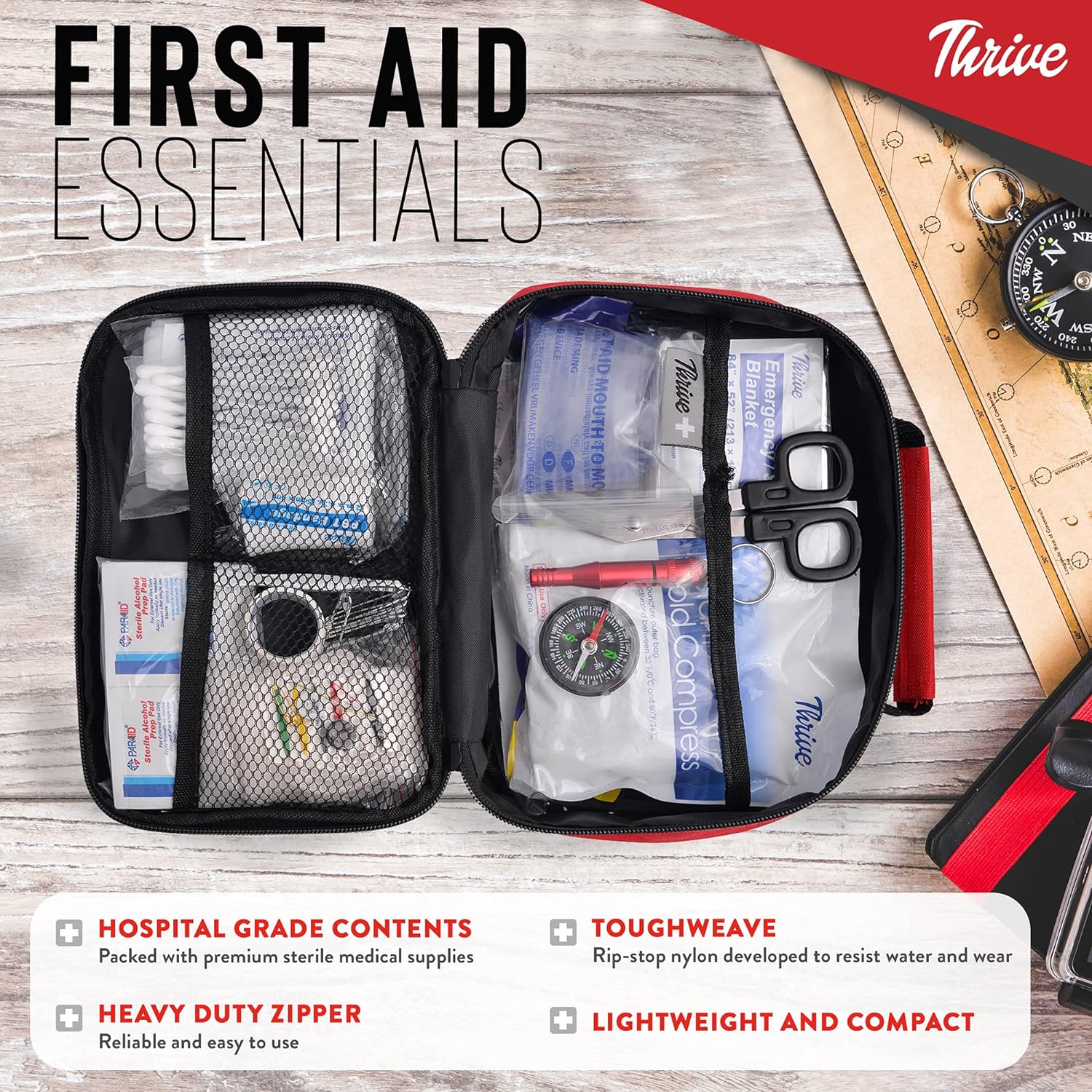 • Trusted: Complies with American ANSI and OSHA professional standards for most environments Manufactured in a modern sterile registered facility and sold by registered company that has been doing business for 40 years. Purchasing a Thrive Brand roadtrip essentials ensures sterile and regulated product