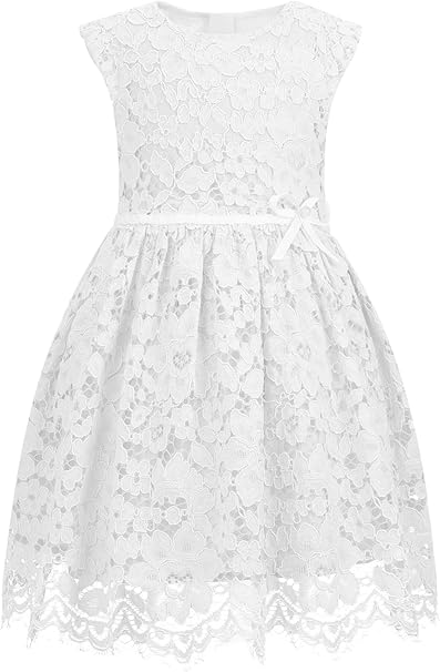 ALLOVIN Girls_‹_ Sleeveless Lace A-Line Party Dress for 2-12 Years | Flower Girl Princess Dress with Beaded Bowknot
