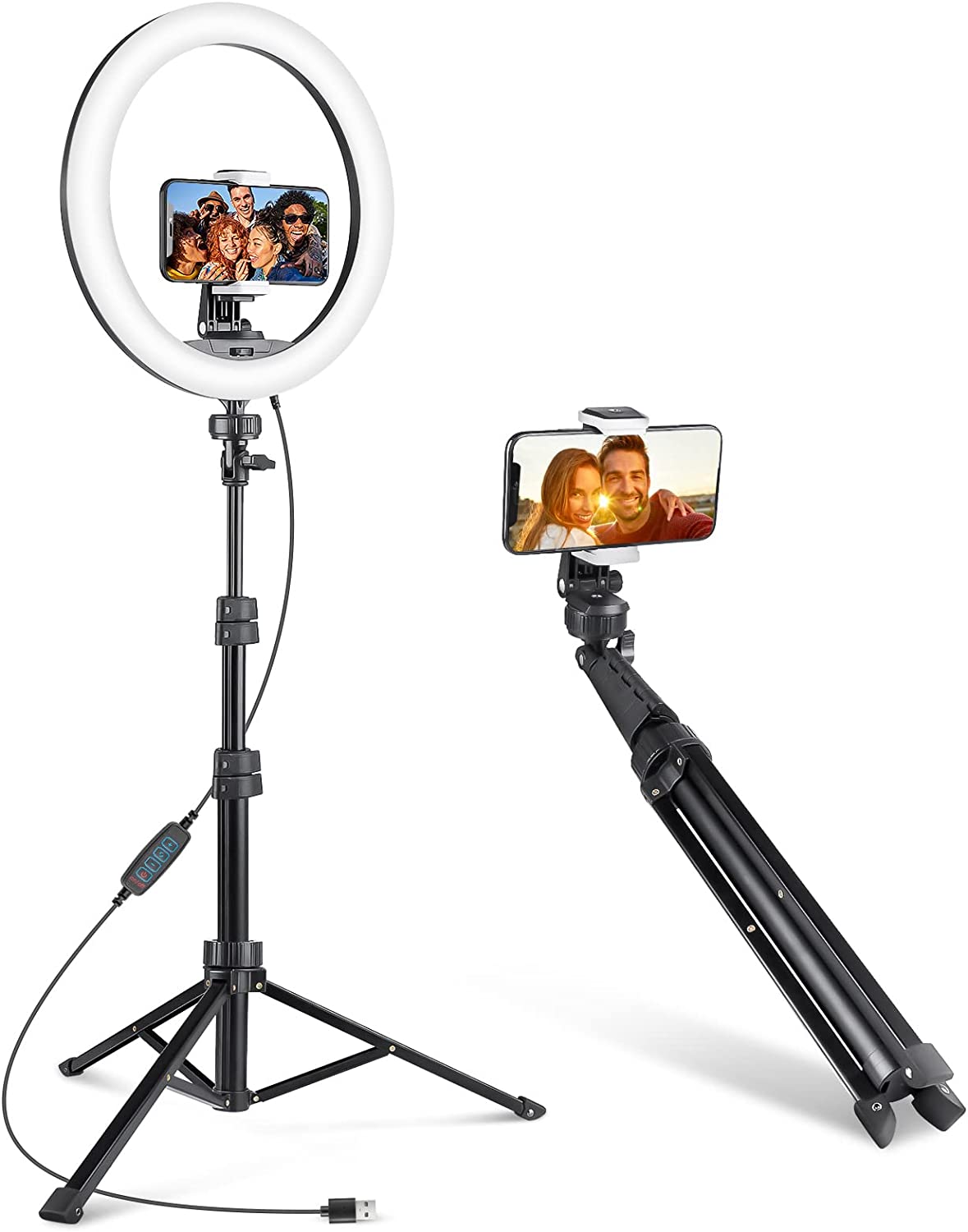 Aureday 12'' Selfie Ring Light with 62'' Tripod Stand and Phone Holder, LED Lighting with Phone Stand for Video Recording, Compatible with Cell Phones and Cameras
