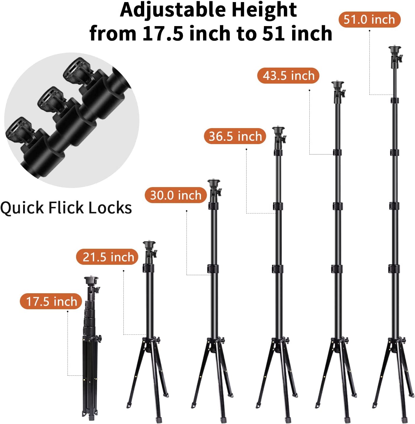 • Upgraded Tripod Stand : 1, No-Twisting-To-Lock That Collapses Over Time, Belsize New Tripod Adopts Quick-Flip Locks And Weighted Tripod Base For Increased Stability So It Won'T Tip Over. 2, Extends From 17. 5" To 51" And Made Of High-Quality Aluminum, It Can Be Adjusted To Any Length Between To Match Your Needs And Last You For Years