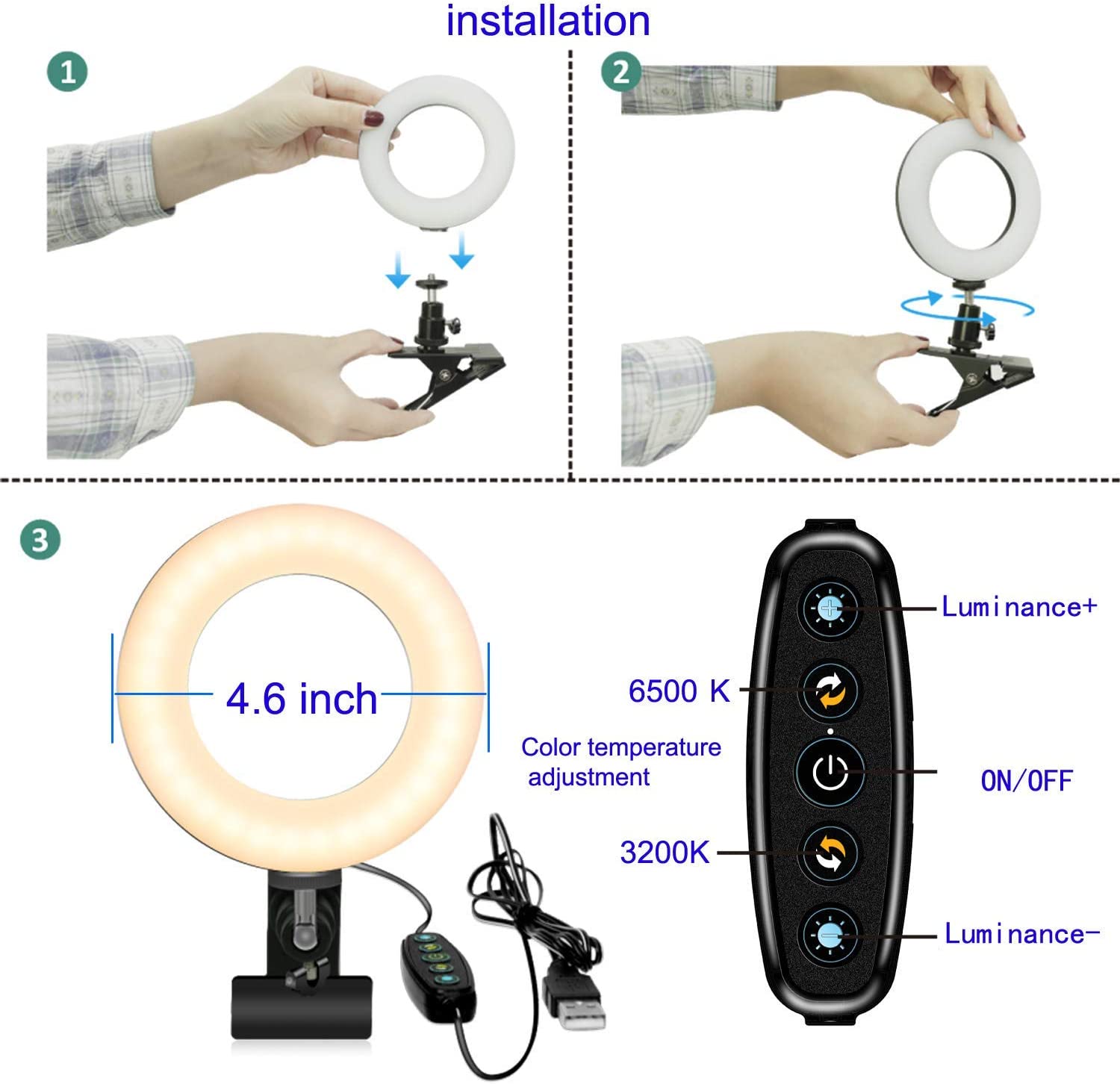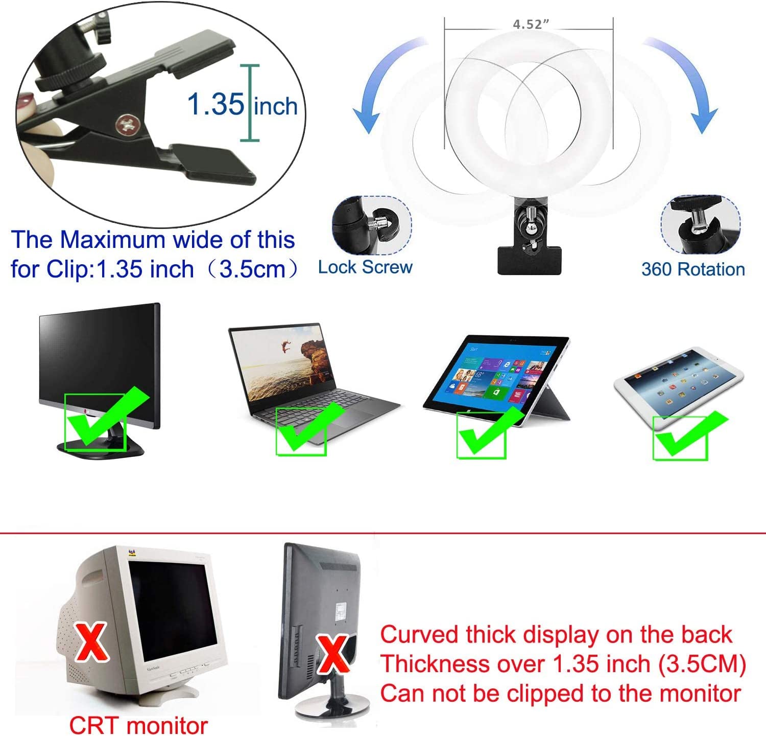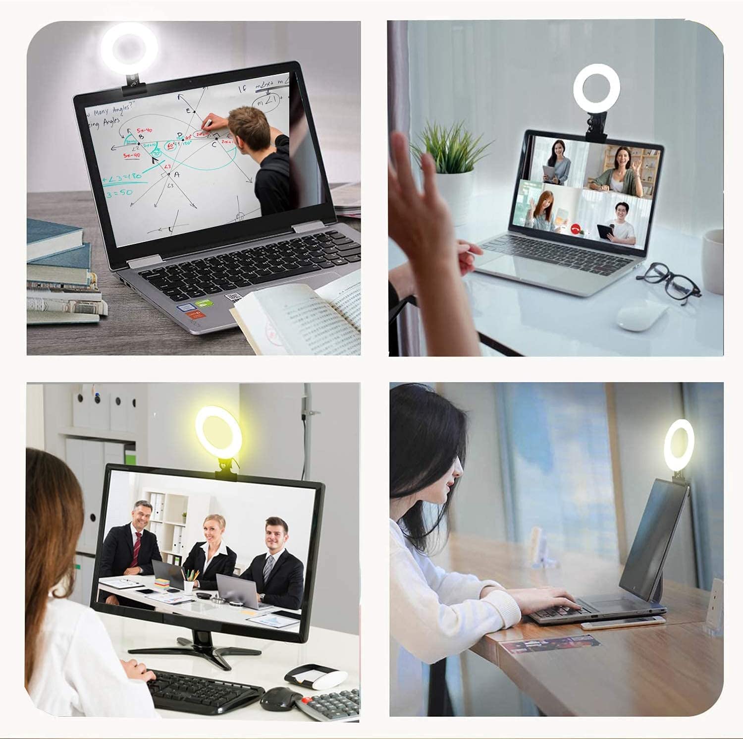 Video Conference Lighting Kit 3200k-6500K Dimmable Led Ring Lights Clip on Laptop Monitor for Remote Working/Zoom Calls/Self Broadcasting/Live Streaming/YouTube Video/TikTok (Black)