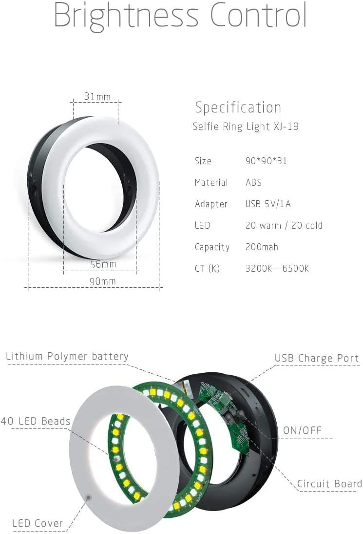 XINBAOHONG Selfie Ring Light Rechargeable Portable Clip-on Selfie Fill Light with 40 LED for Smart Phone Photography, Camera Video, Girl Makes up