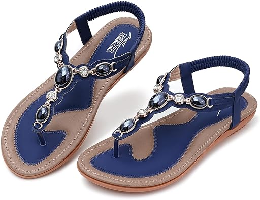 SHIBEVER Flat Sandals for Women Dressy: Summer Comfortable Dress Thong Flats Sandal