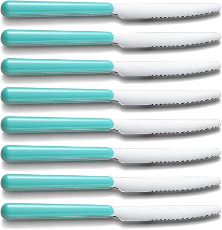 8.1_†� Dinner Knives Set, 24 PCS Blue Knives Set, Food Grade Stainless Steel with Plastic Handle Butter Knife, Table Knife, Sharp Knives Set, Knives Silverware, Dishwasher Safe & Mirror Polished