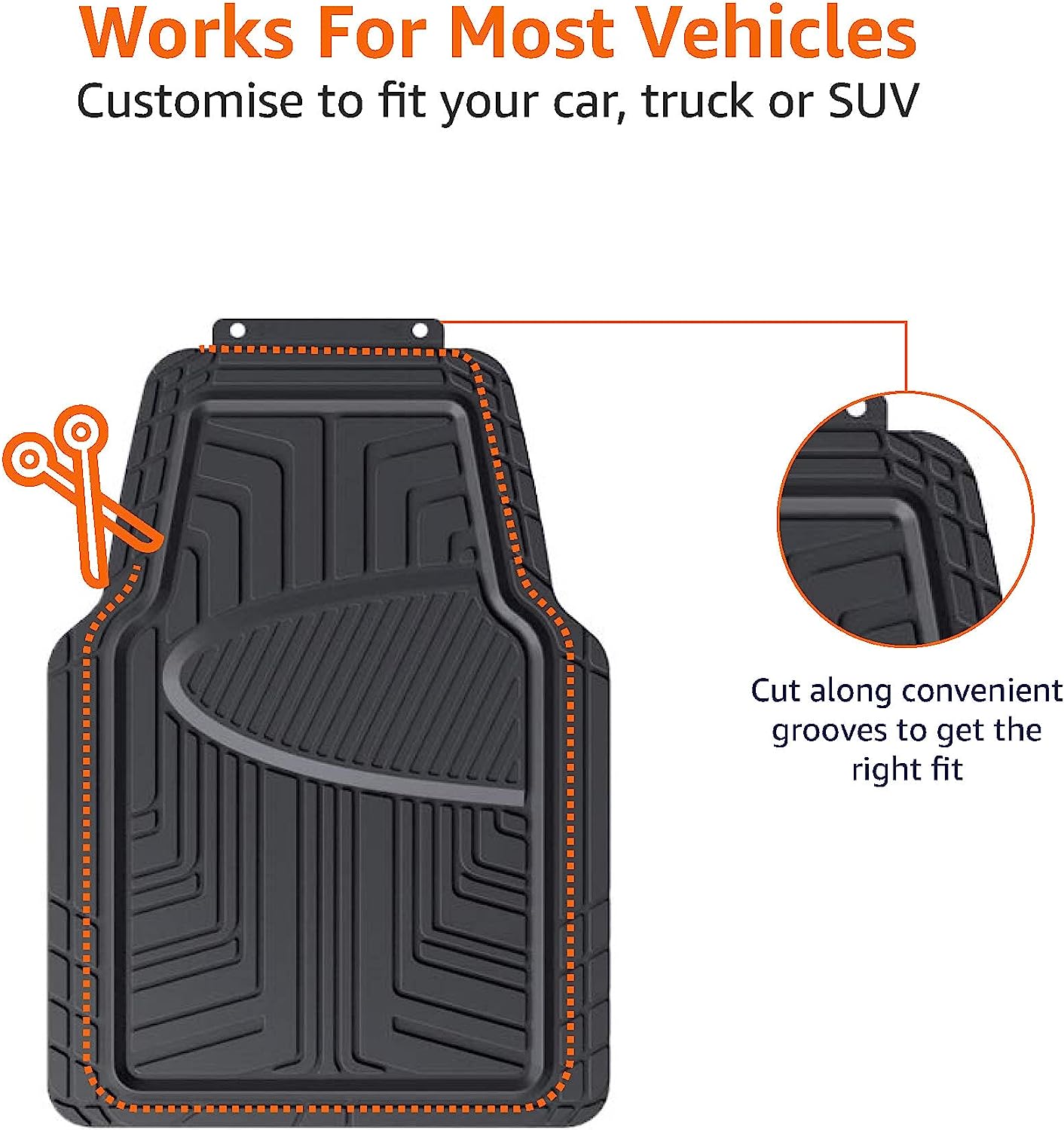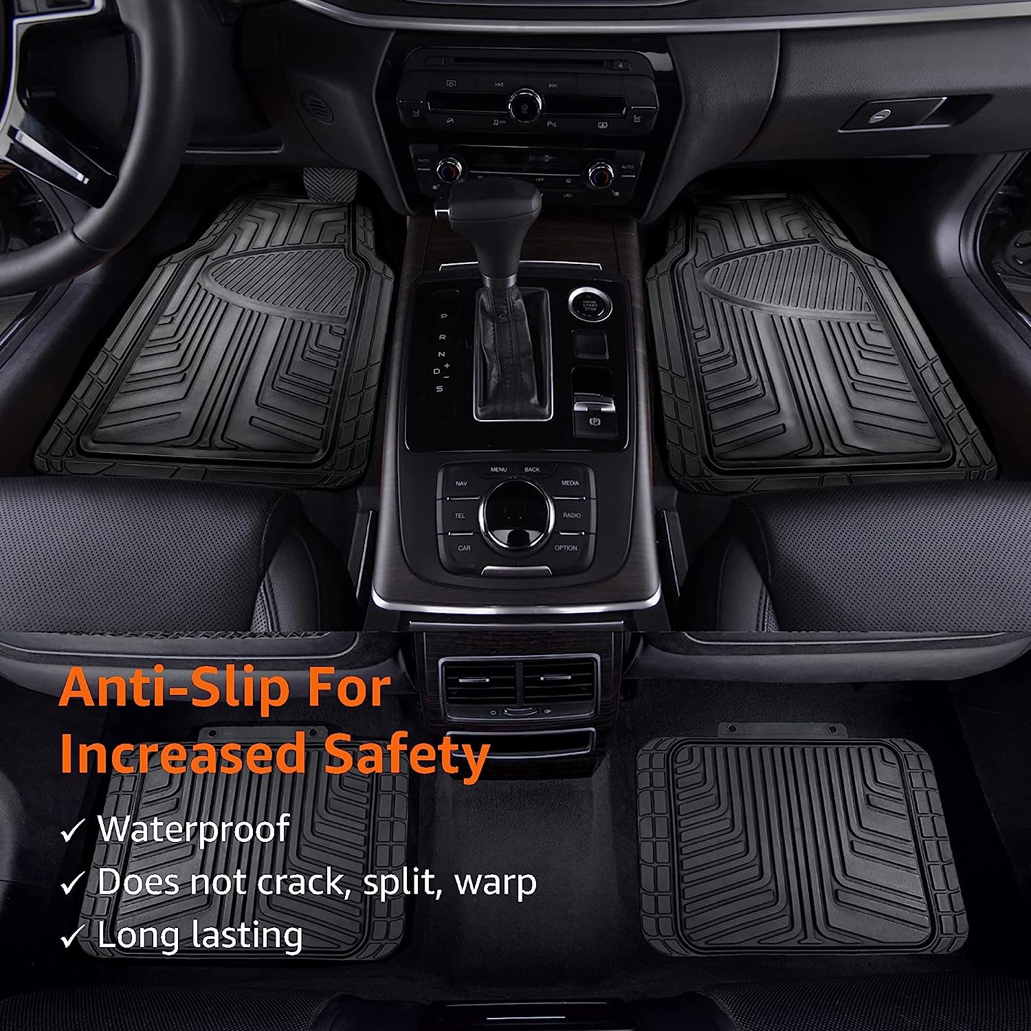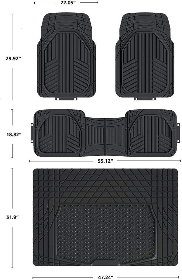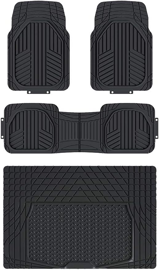 Amazon Basics 4-Piece All-Season Odorless Heavy Duty Rubber Floor Mat Set with Cargo Liner for Cars, SUVs, and Trucks