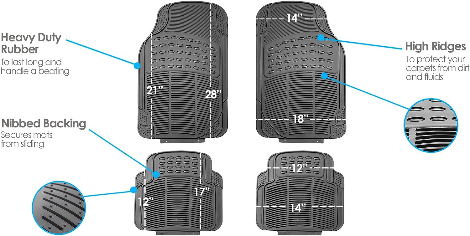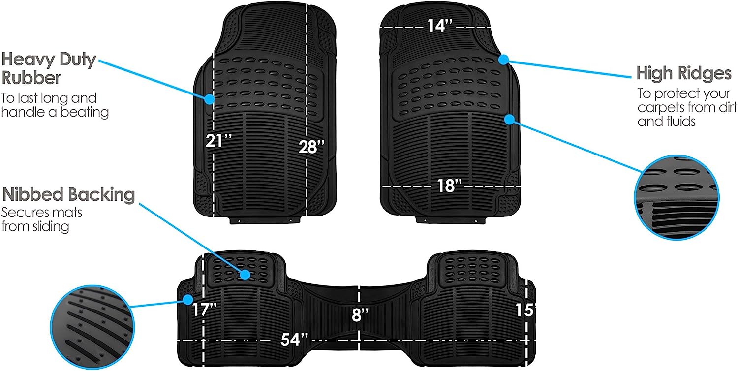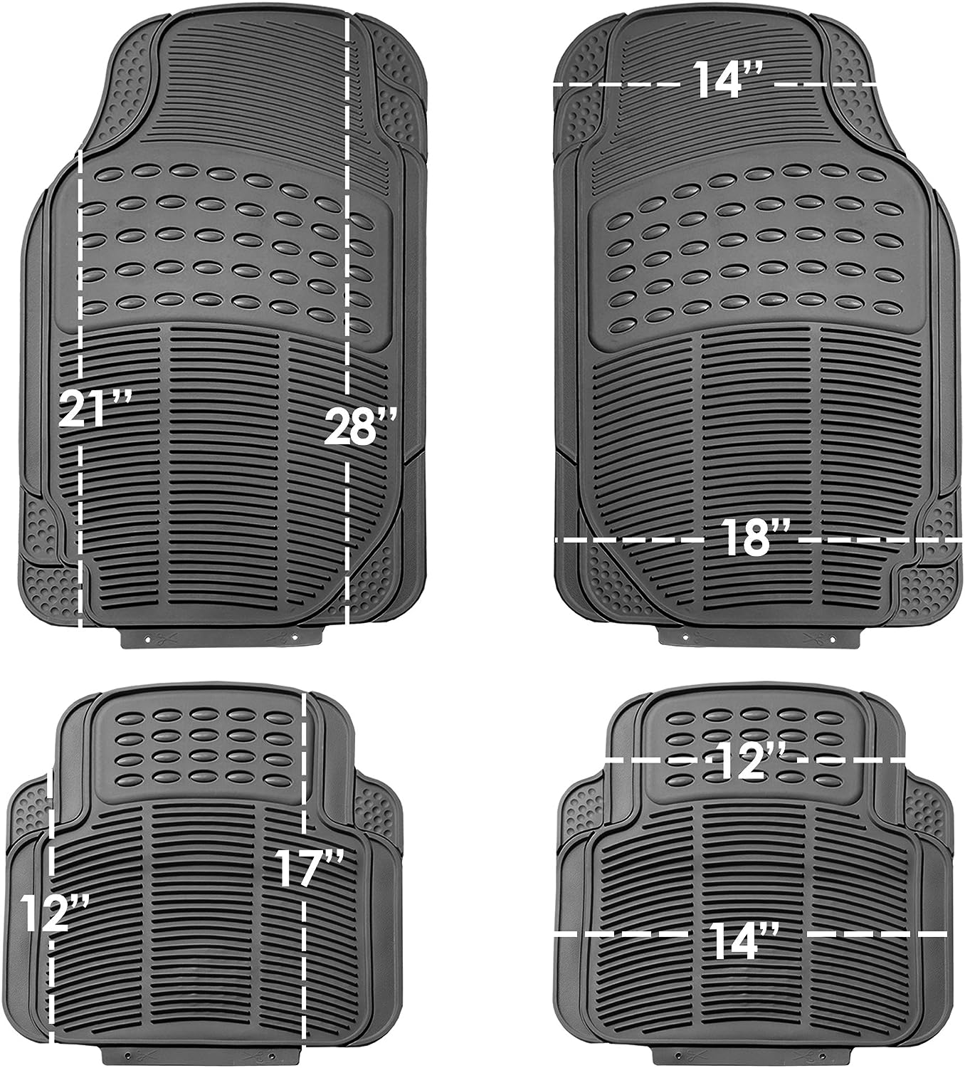 Protecting your car’s floors is essential. That’s why FH Group designed multiple styles of floor mats so you can choose the best option to protect your ride! Select between materials such as reliable heavy-duty rubber, classic carpet, luxurious faux leather, and cozy faux rabbit fur. We have floor mats for women, for men, and for everyone! If you want floor mats that protect your car’s floor at all times and from everything, choose some of our rubber and vinyl mats that feature tall outer edges and deep ridge channels to prevent any spill, mud, or dirt from going anywhere in your car. This tough material is also very easy to clean, so you can quickly shake, rinse or wash off any dirt, and the floor mats will be intact and good to go. If you are looking for a more aesthetically pleasing option that will not only protect your car’s interior but also enhance your vehicle's look, we have options for you! If you want a fancy and sleek look, go for our faux leather floor mats. This material not only looks sophisticated, but it also is tough and durable. If comfort and looks are your priority, we recommend our faux rabbit fur floor mats, which will make your car comfy and cozy. No matter what floor mat you choose, just know that FH Group’s products got you covered!