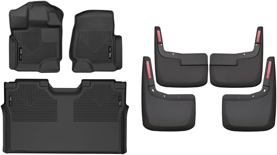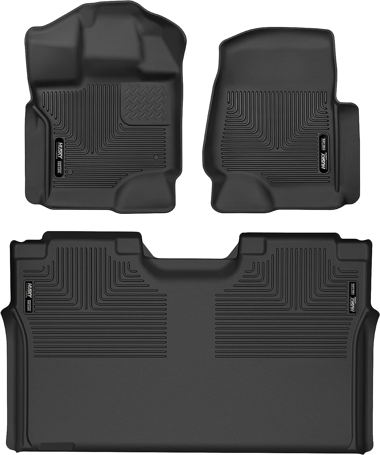 Husky Liners - Weatherbeater | Fits 2015 - 2023 Ford F-150 SuperCrew Cab (includes 22 - 23 Lightning Models) w/o Fold Flat Storage, Front & 2nd Row Liners - Black, 3 pc. | 94041