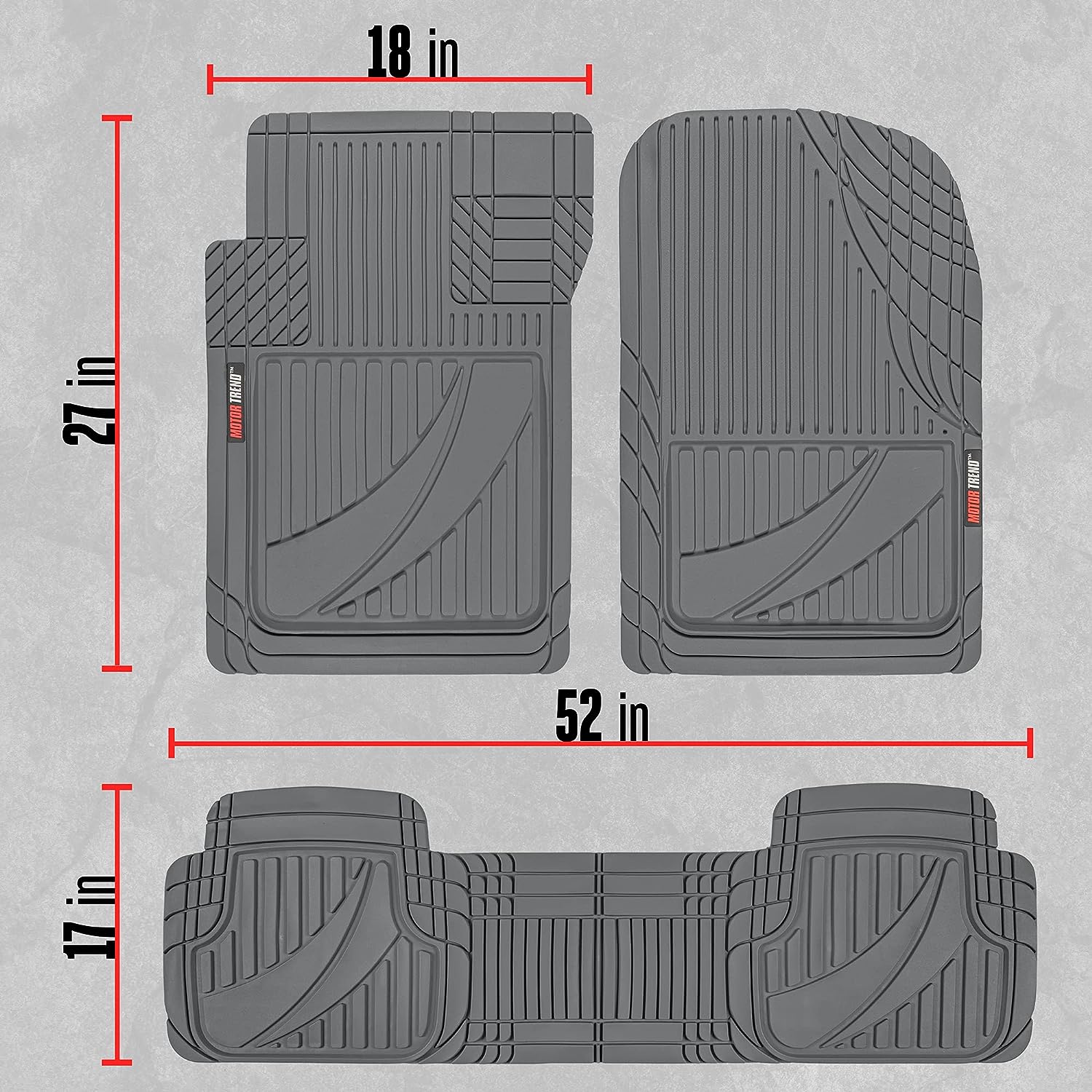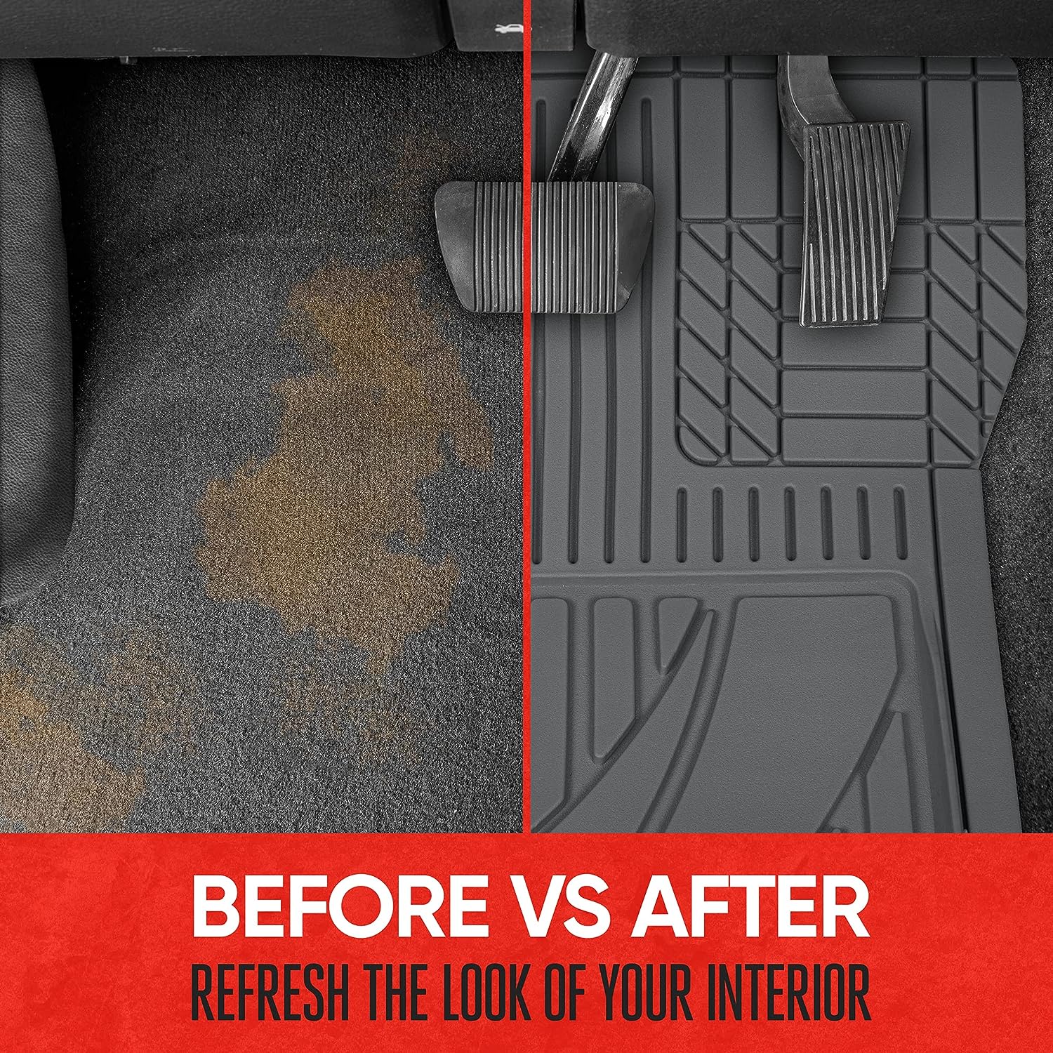 All Weather Protection: Through Rain, Snow, and Mud No Cracks: Extreme Temp. Tested Advanced Rubber Polymers No Slips: Strategically Placed Grips for Safety and Comfort. Easy Installation and Removal: Simply use a pair of scissors along the exterior lines to trim the mat and fit your cars floor. Removal of any messes are made easy thanks to the configuration of the grooves. Vehicle Make Ford; Toyota; Honda; GM; Volkswagen; BMW; Nissan; Hyundai; Kia; Tesla; Benz; Jaguar; Lexus; Acura.
