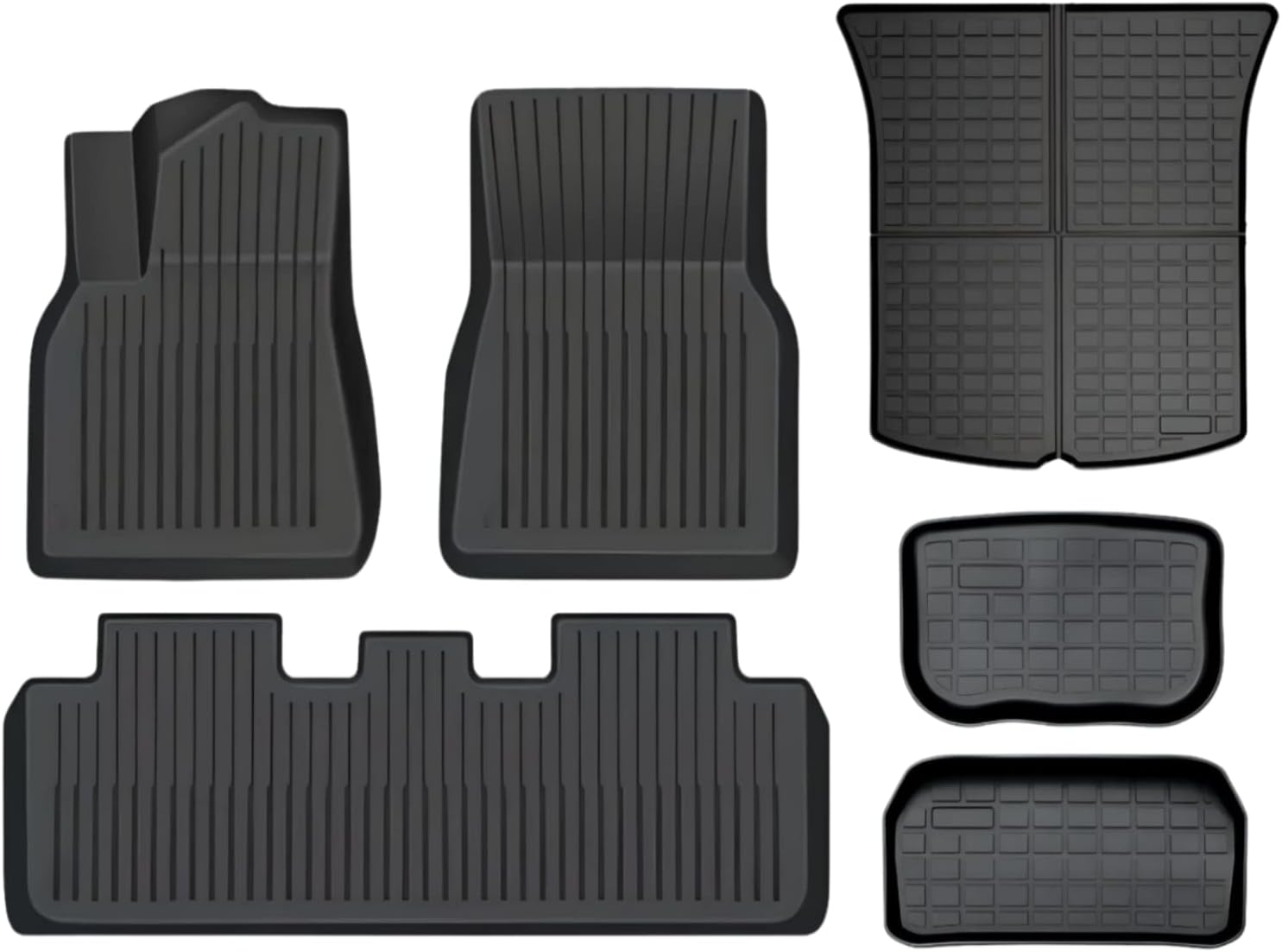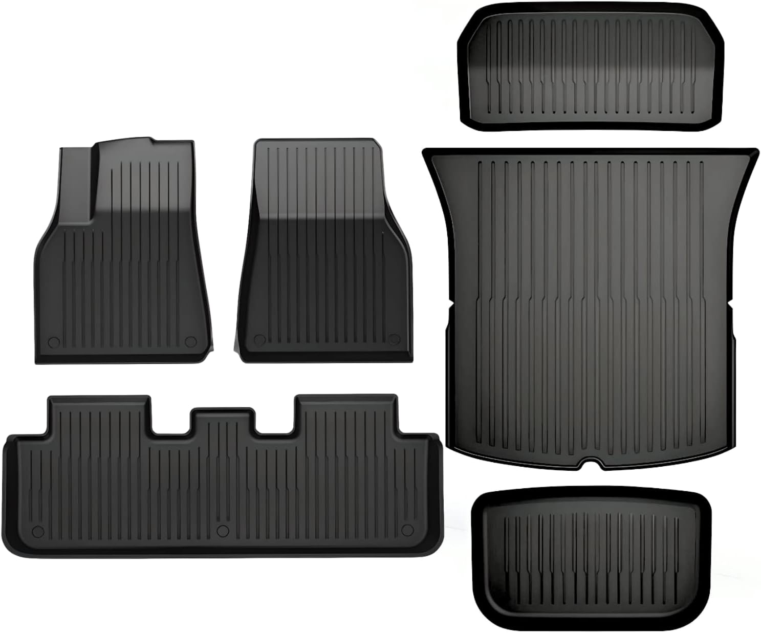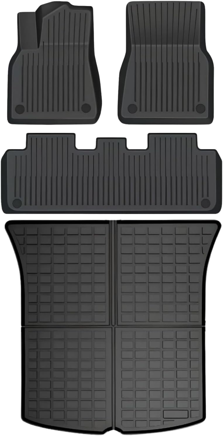 SUPER LINER Floor Mats for Tesla Model Y 5-Seat 2021-2023 Custom Fit All Weather TPE Cargo Liner Cargo Trunk Accessories (Does NOT fit 7-Seat) (Tesla Model Y Floor Mats Full Set)