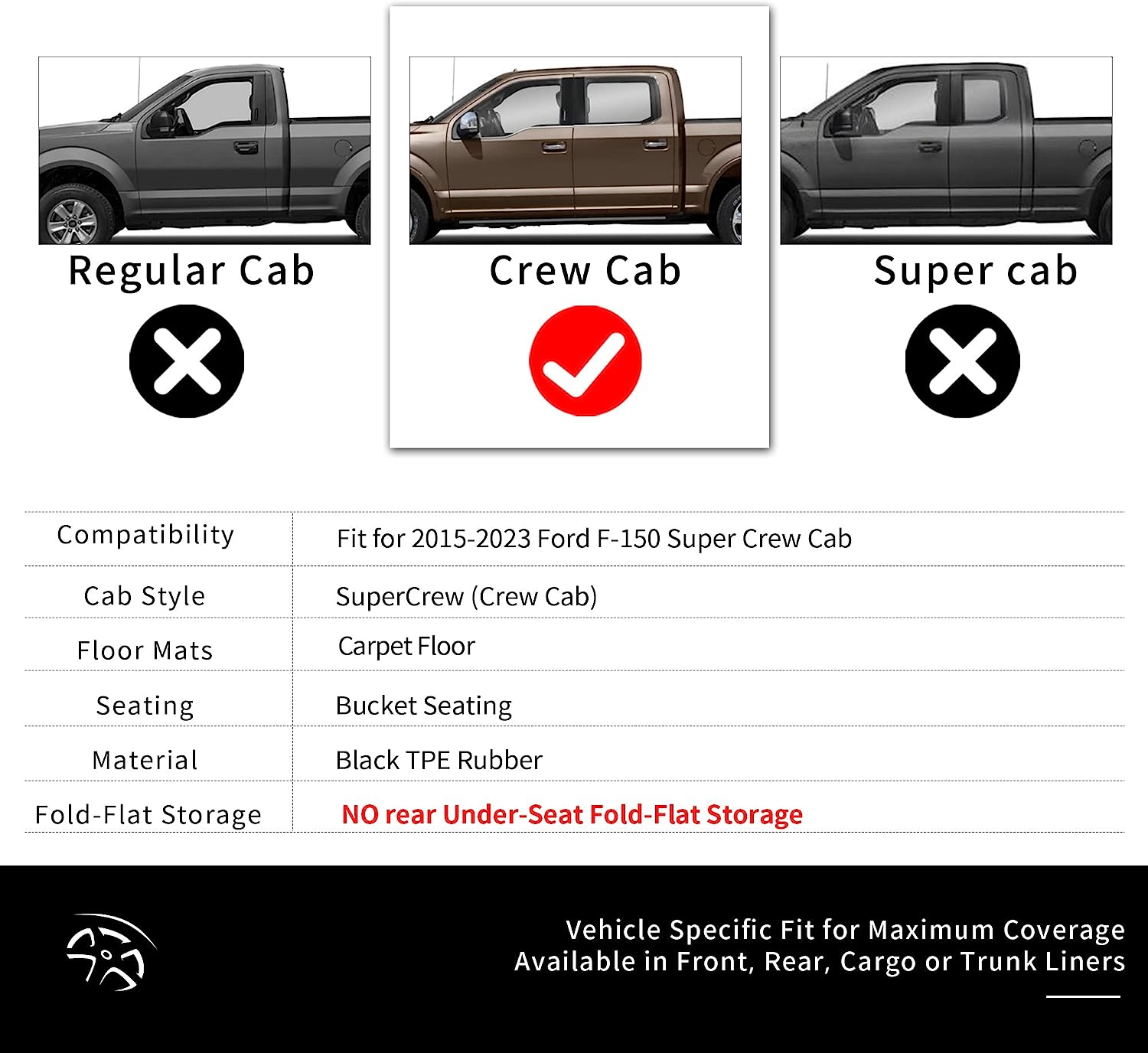 YITAMOTOR Floor Mats Compatible with 2015-2023 Ford F-150 / F150 Lightning SuperCrew Cab (Not Fit Rear Seat with Under-Seat Fold Flat Storage), 1st & 2nd Row All Weather Protection