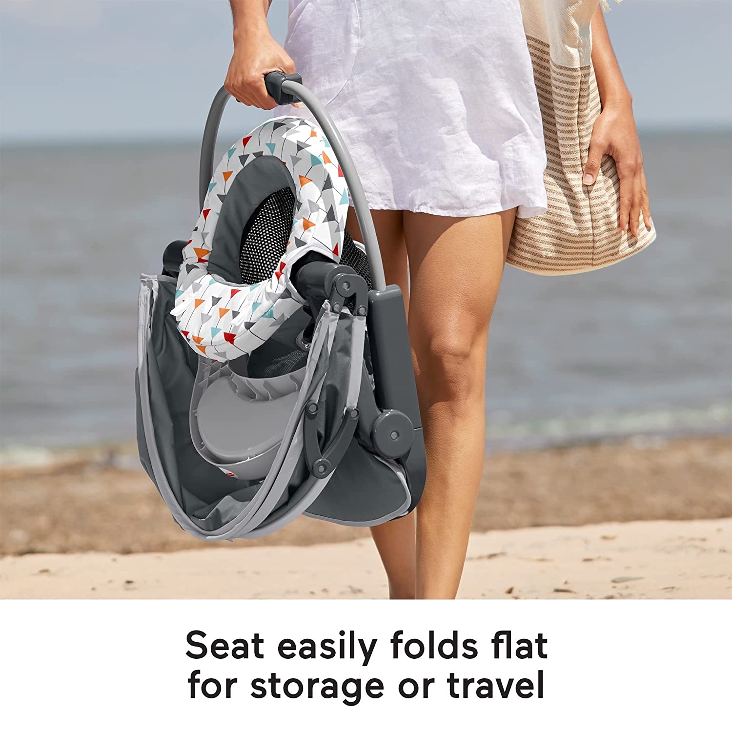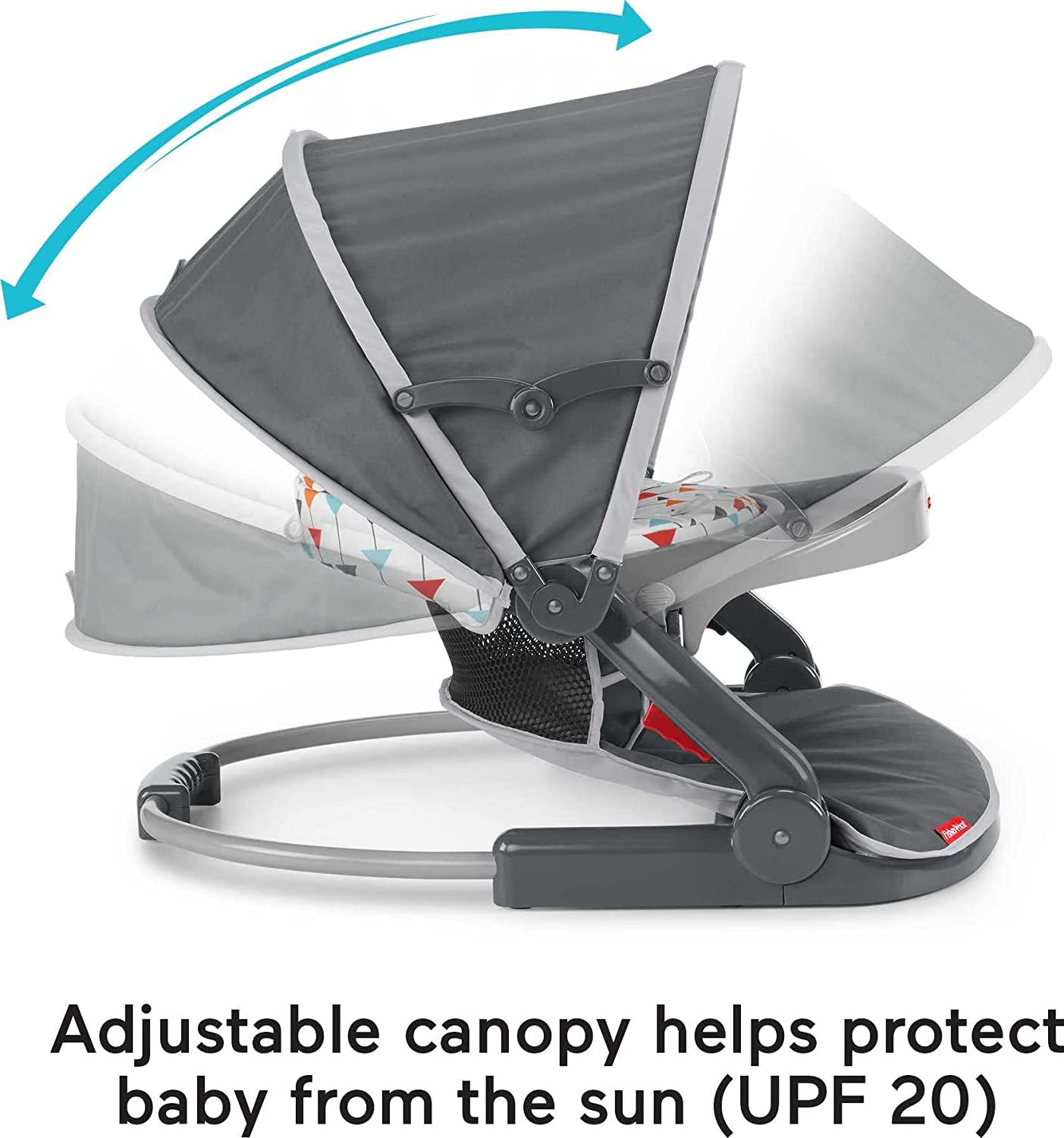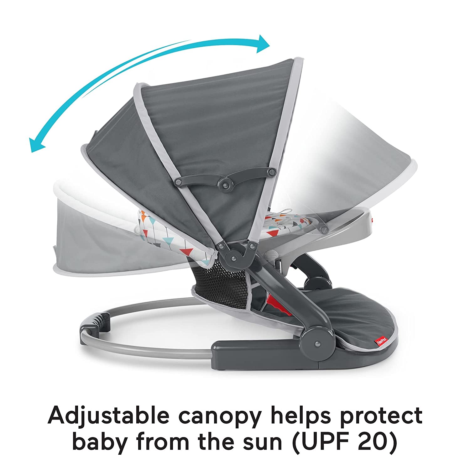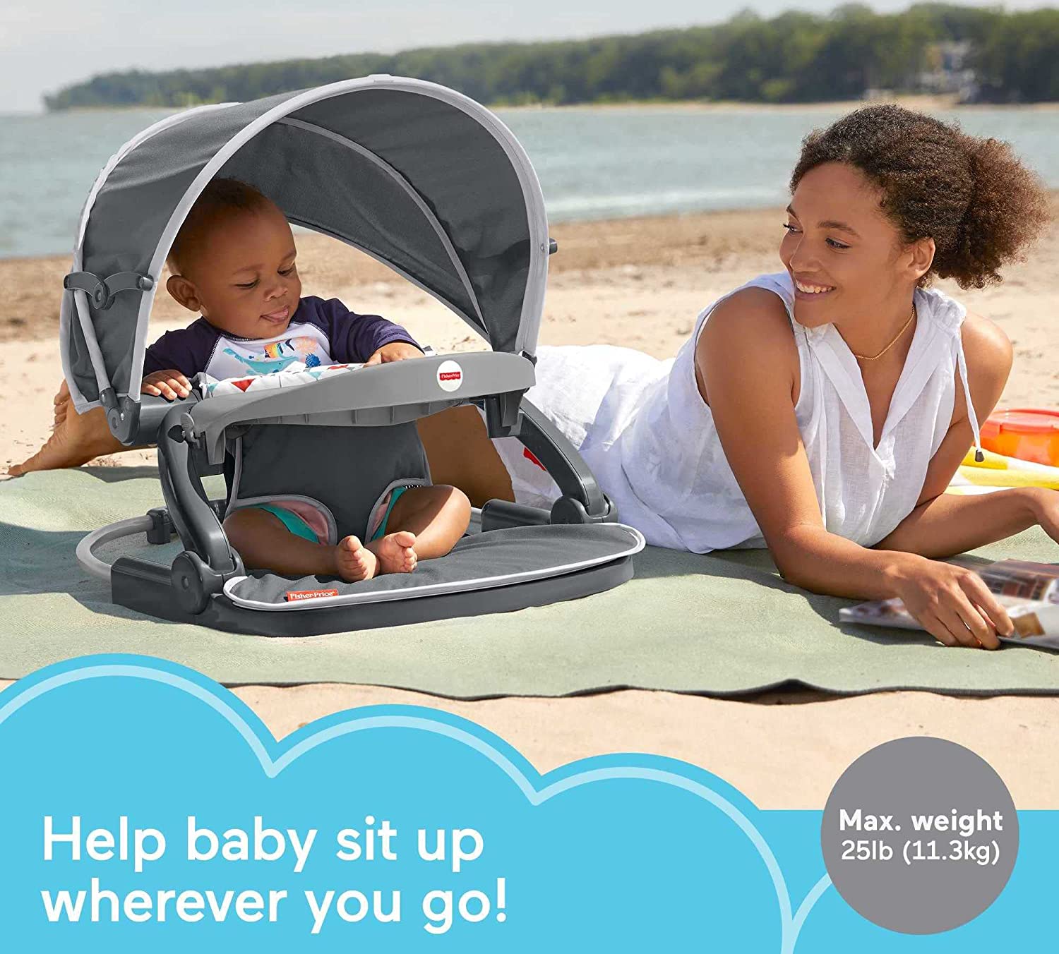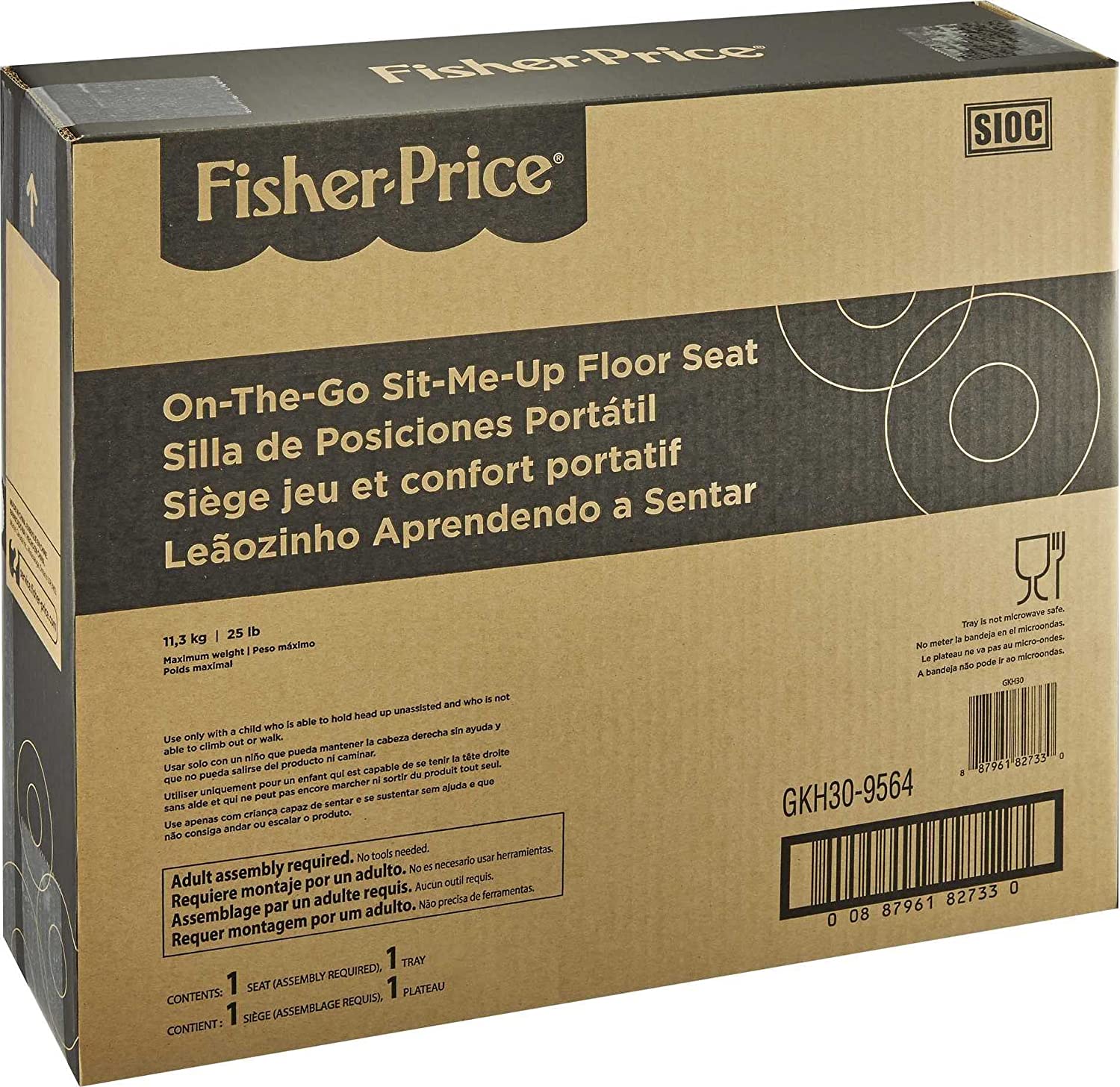 The Fisher-Price On-the-Go Sit-Me-Up Floor Seat is a super-convenient dining and play chair for your favorite little travel companion. The soft fabrics and wide base of this infant chair help support your baby as you sit them up to interact with the world around, and the overhead canopy helps protect against the sun's bright rays. And the best part The seat folds flat, making it easy to store or take with you as you travel! Max. weight 11,3 kg/ 25 lb. Use only with a child who is able to hold head up unassisted and who is not able to climb out or walk.