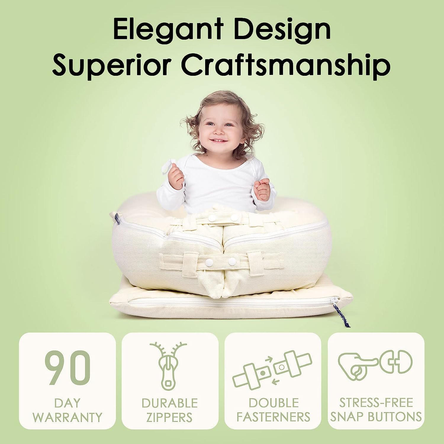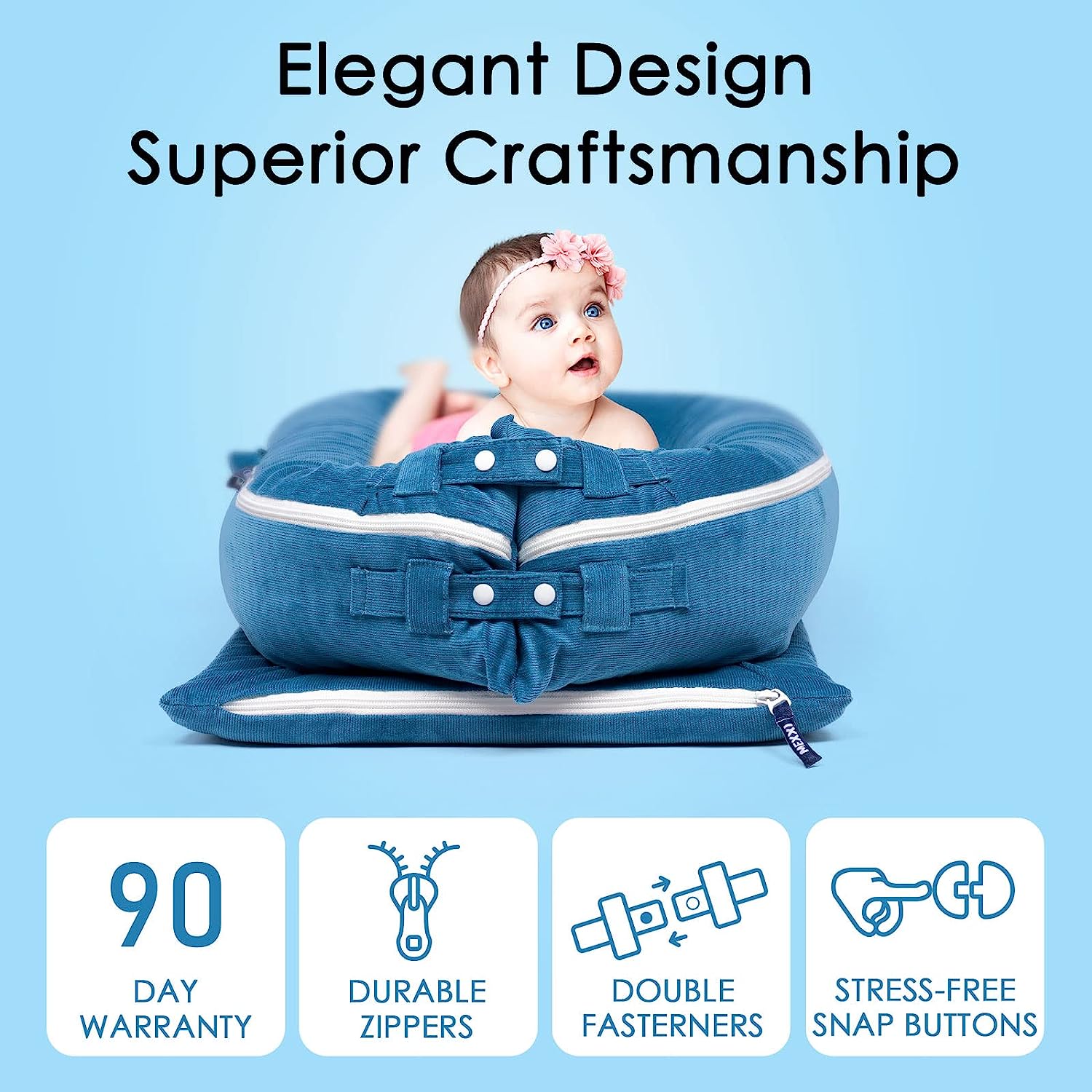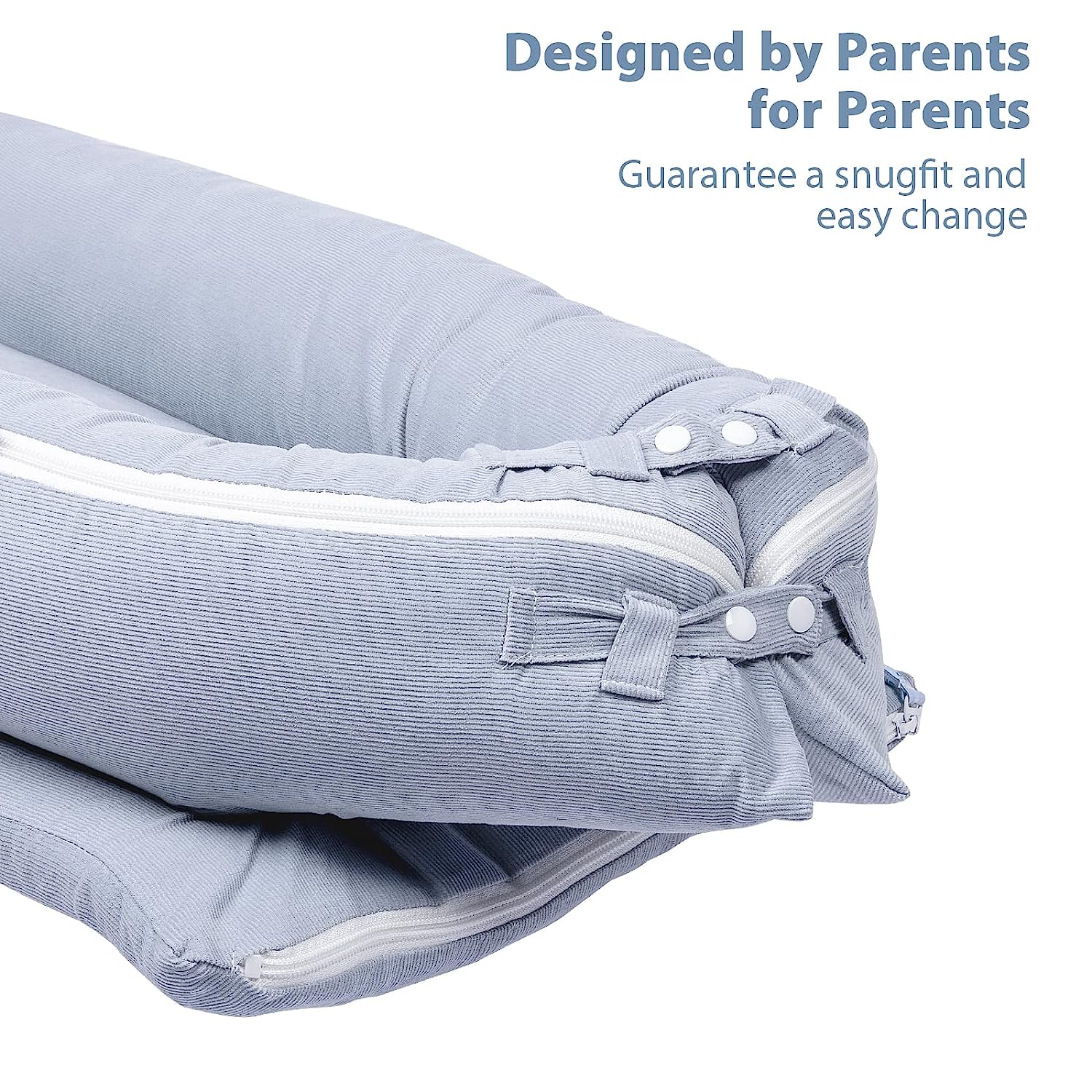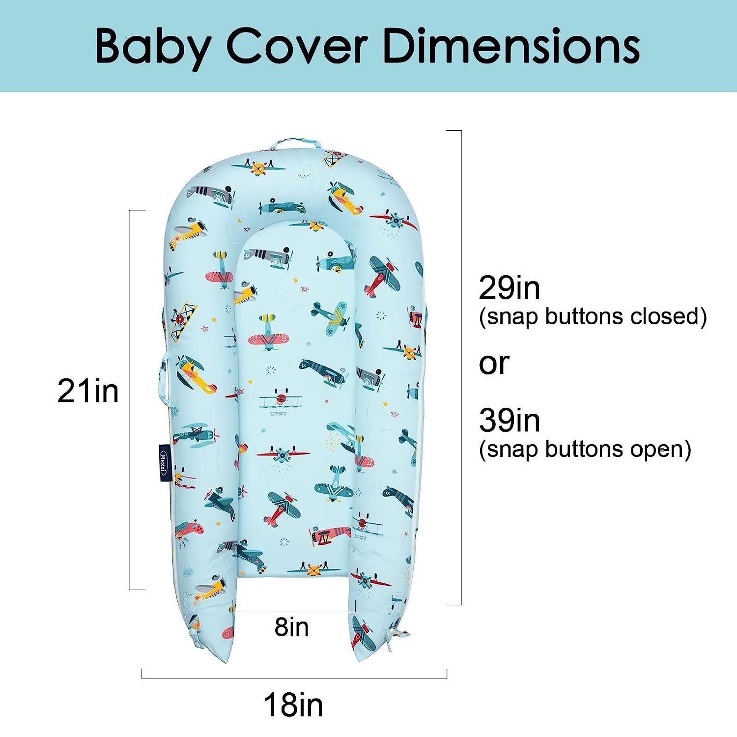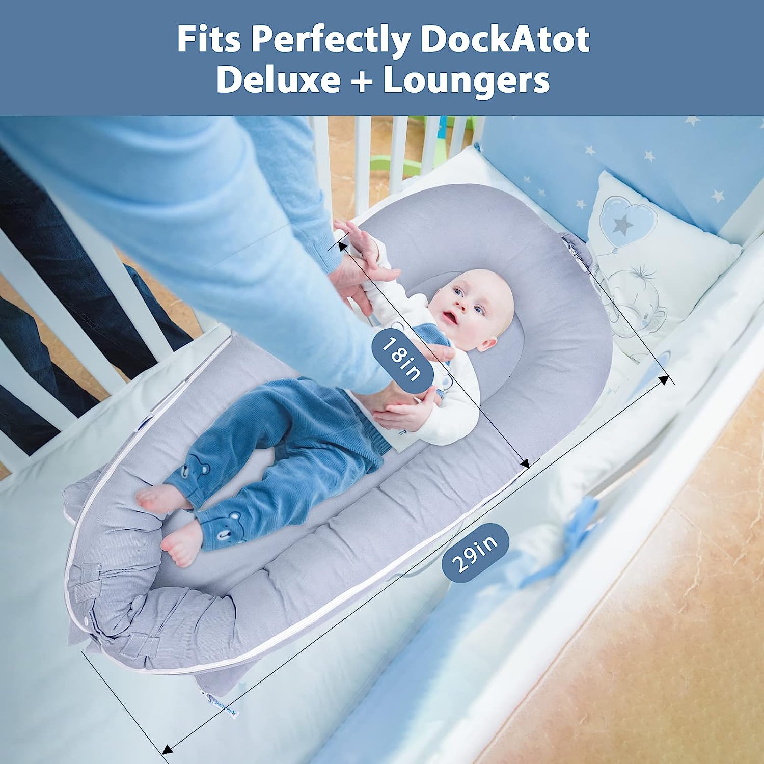 Having a couple of extra covers for your deluxe dock is a life saver. Our baby lounger cover perfectly fits your dock. Having handles on the sides makes it easy to carry the dock with you while you travel. 100% cotton and non-toxic fabric is used in the manufacturing process of our replacement covers. You do not have to worry about your child being exposed to harmful substances. Strong zippers and snap buttons will last for years to come.