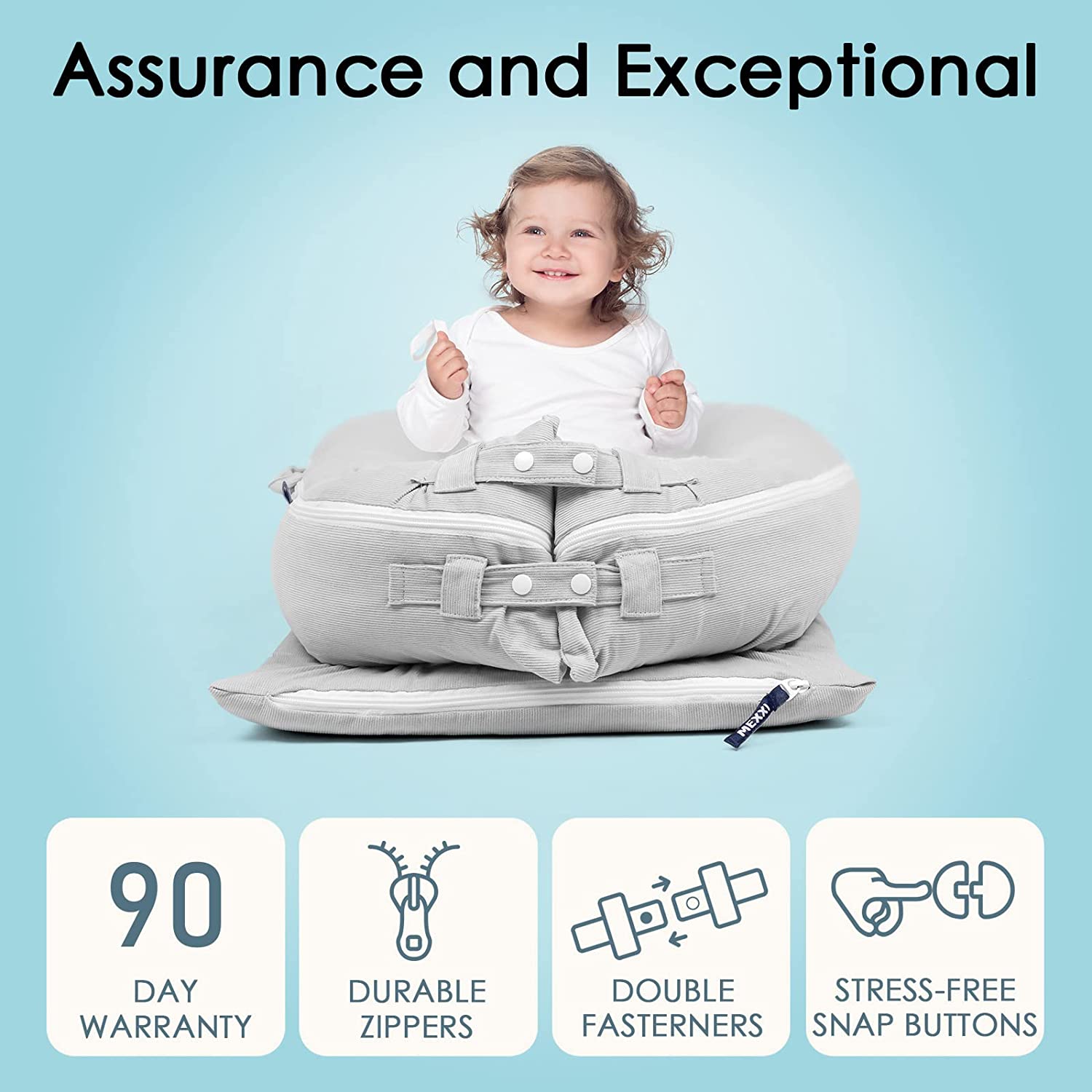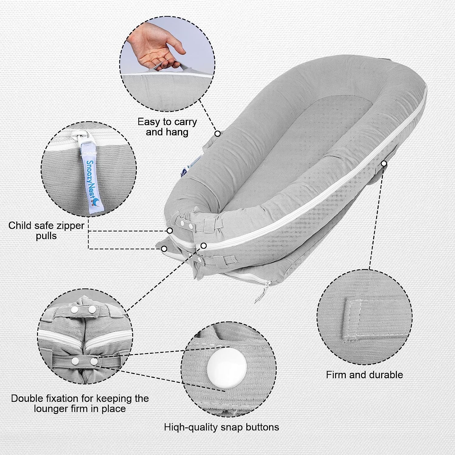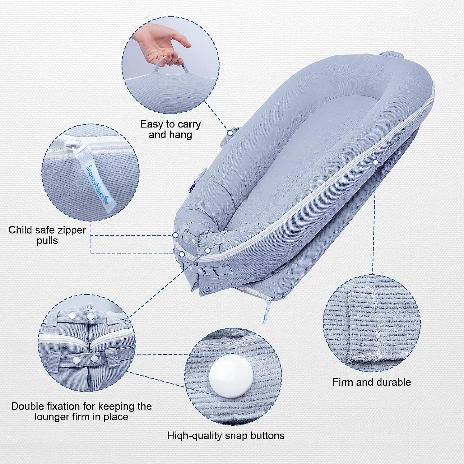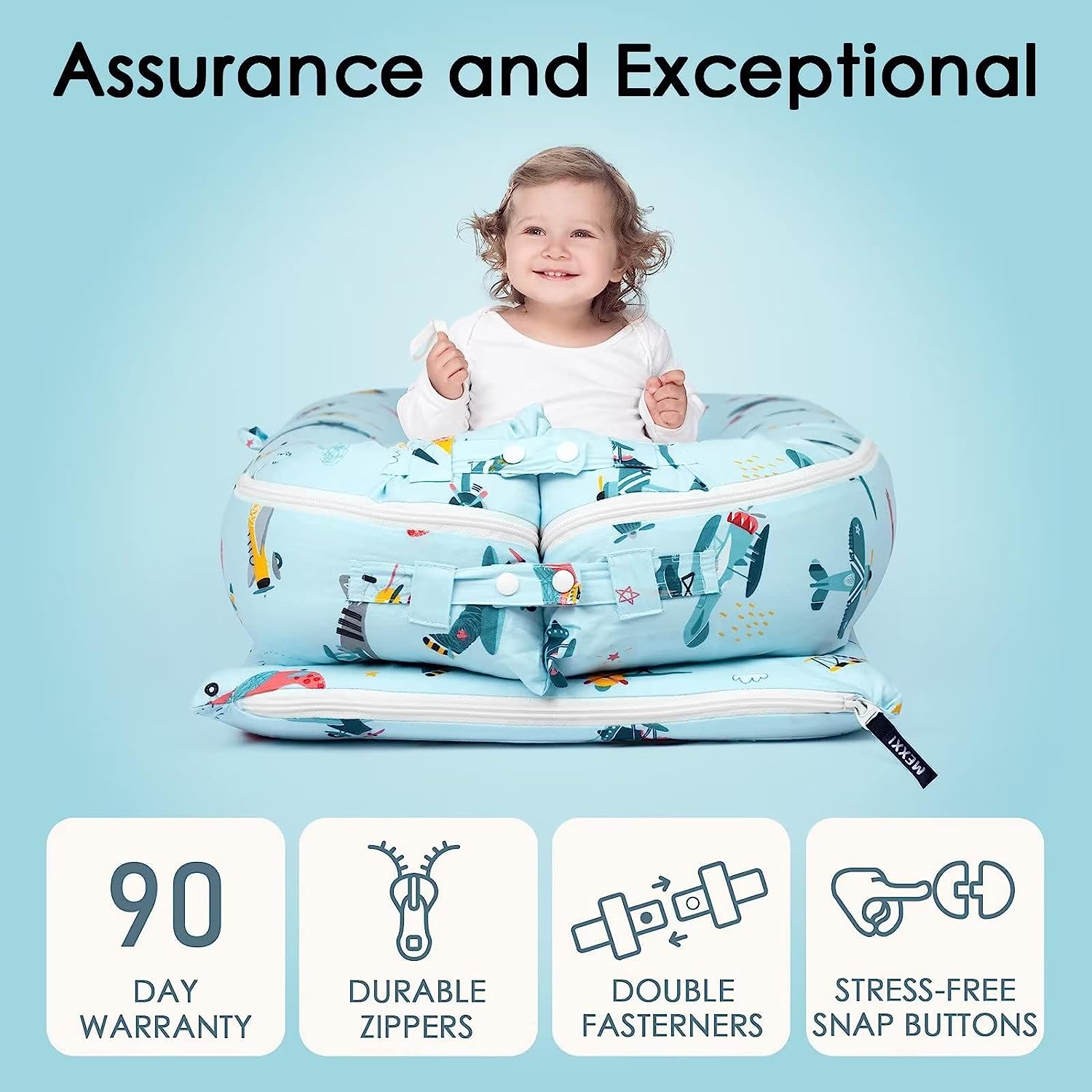 Having a couple of extra covers for your deluxe dock is a life saver. Our baby lounger cover perfectly fits your dock. Having handles on the sides makes it easy to carry the dock with you while you travel. 100% cotton and non-toxic fabric is used in the manufacturing process of our replacement covers. You do not have to worry about your child being exposed to harmful substances. Strong zippers and snap buttons will last for years to come.