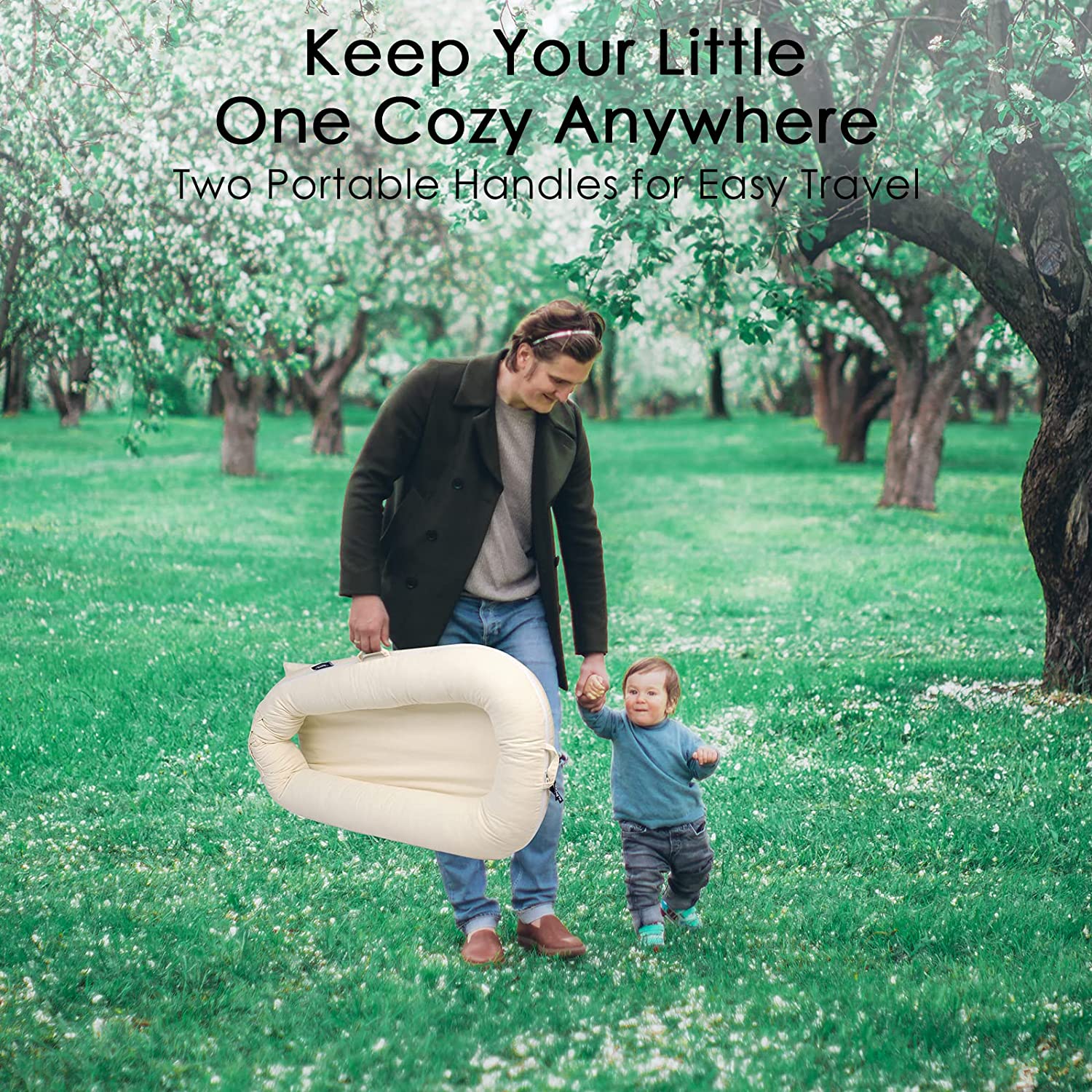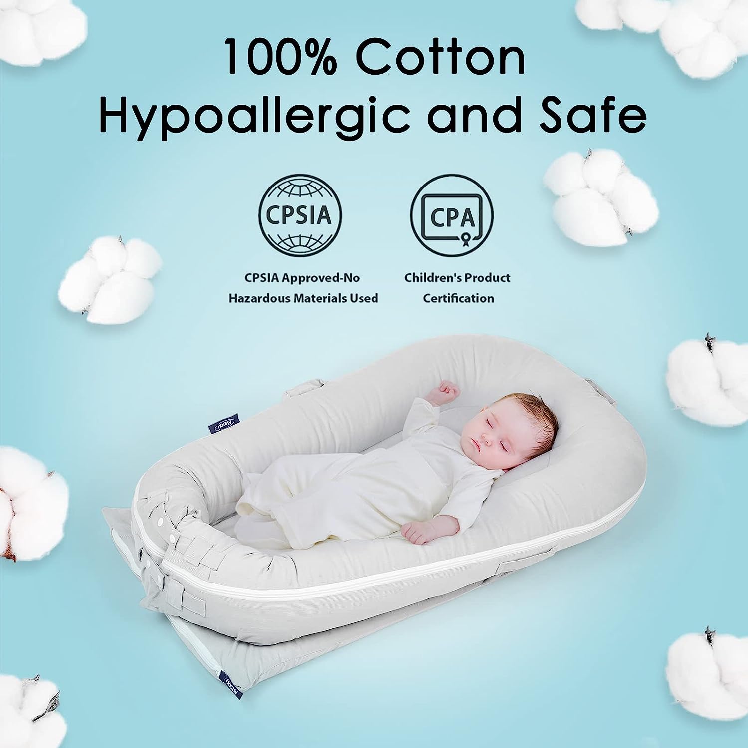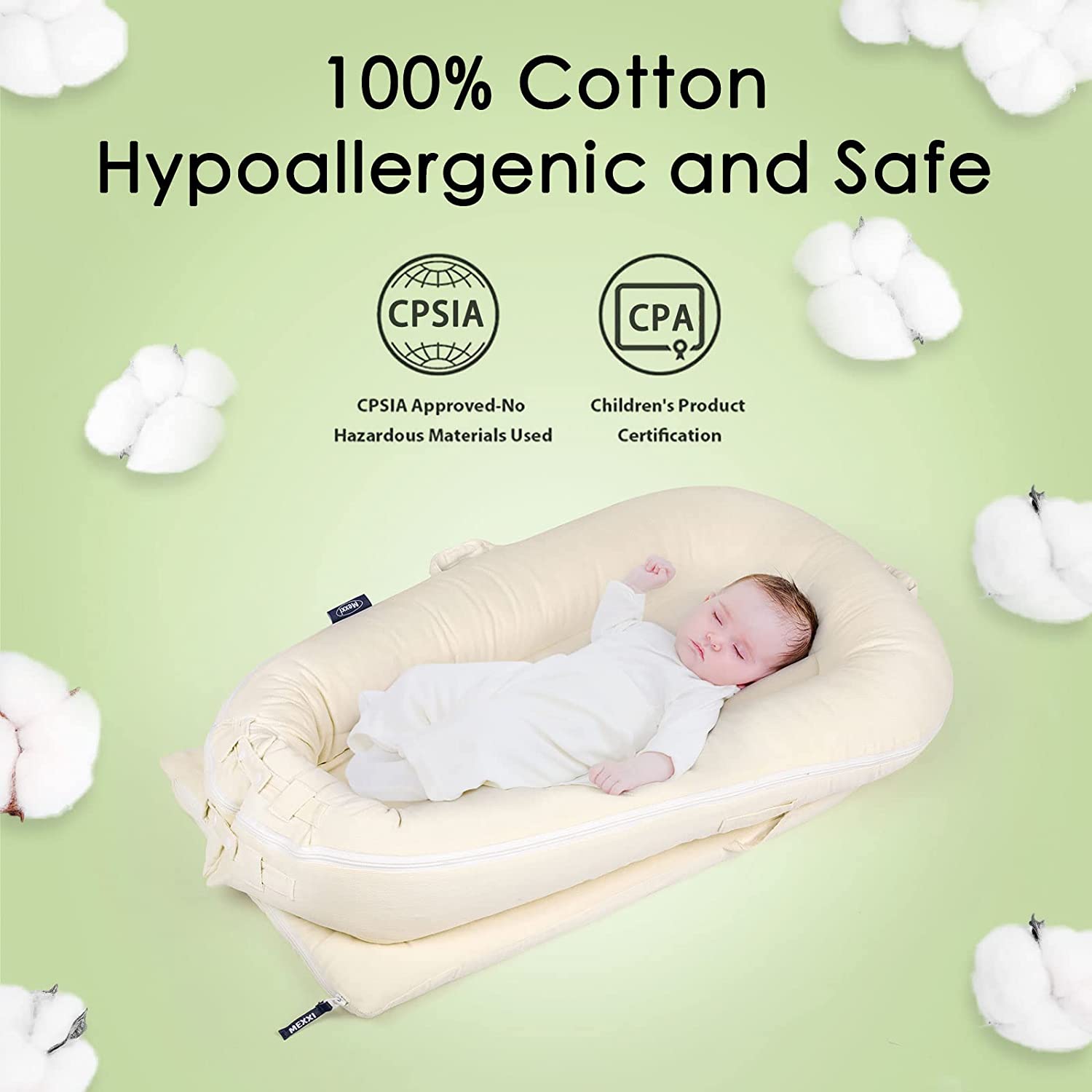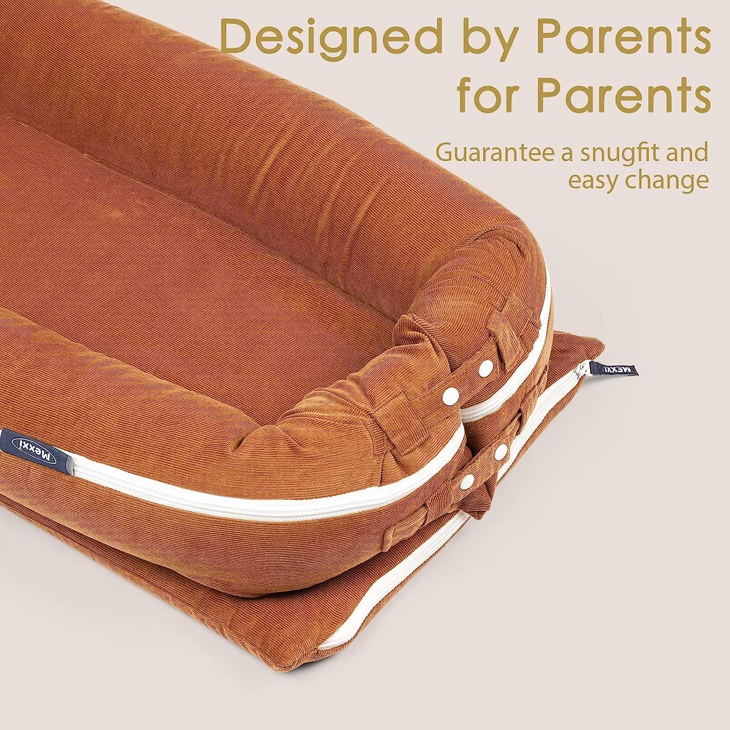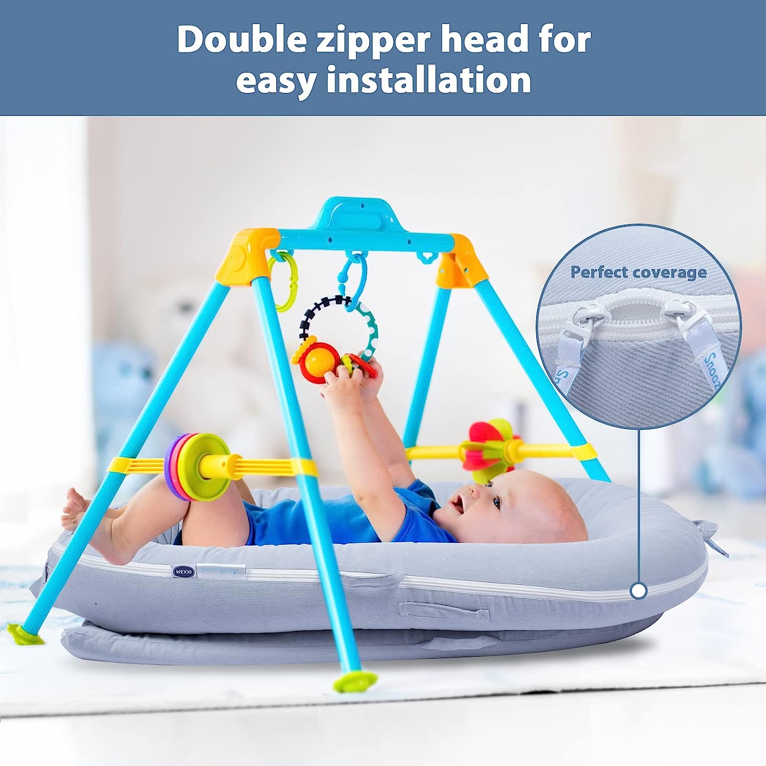Having a couple of extra covers for your deluxe dock is a life saver. Our baby lounger cover perfectly fits your dock. Having handles on the sides makes it easy to carry the dock with you while you travel. 100% cotton and non-toxic fabric is used in the manufacturing process of our replacement covers. You do not have to worry about your child being exposed to harmful substances. Strong zippers and snap buttons will last for years to come.