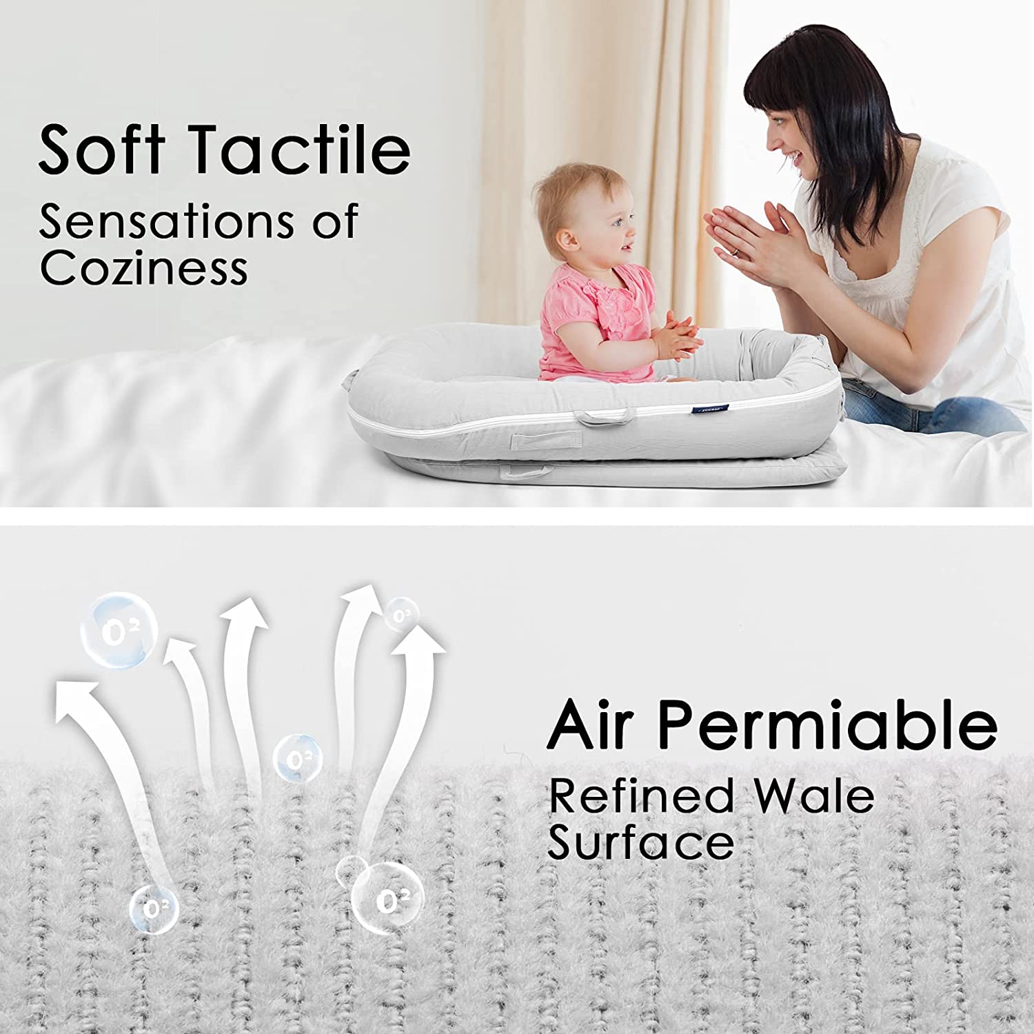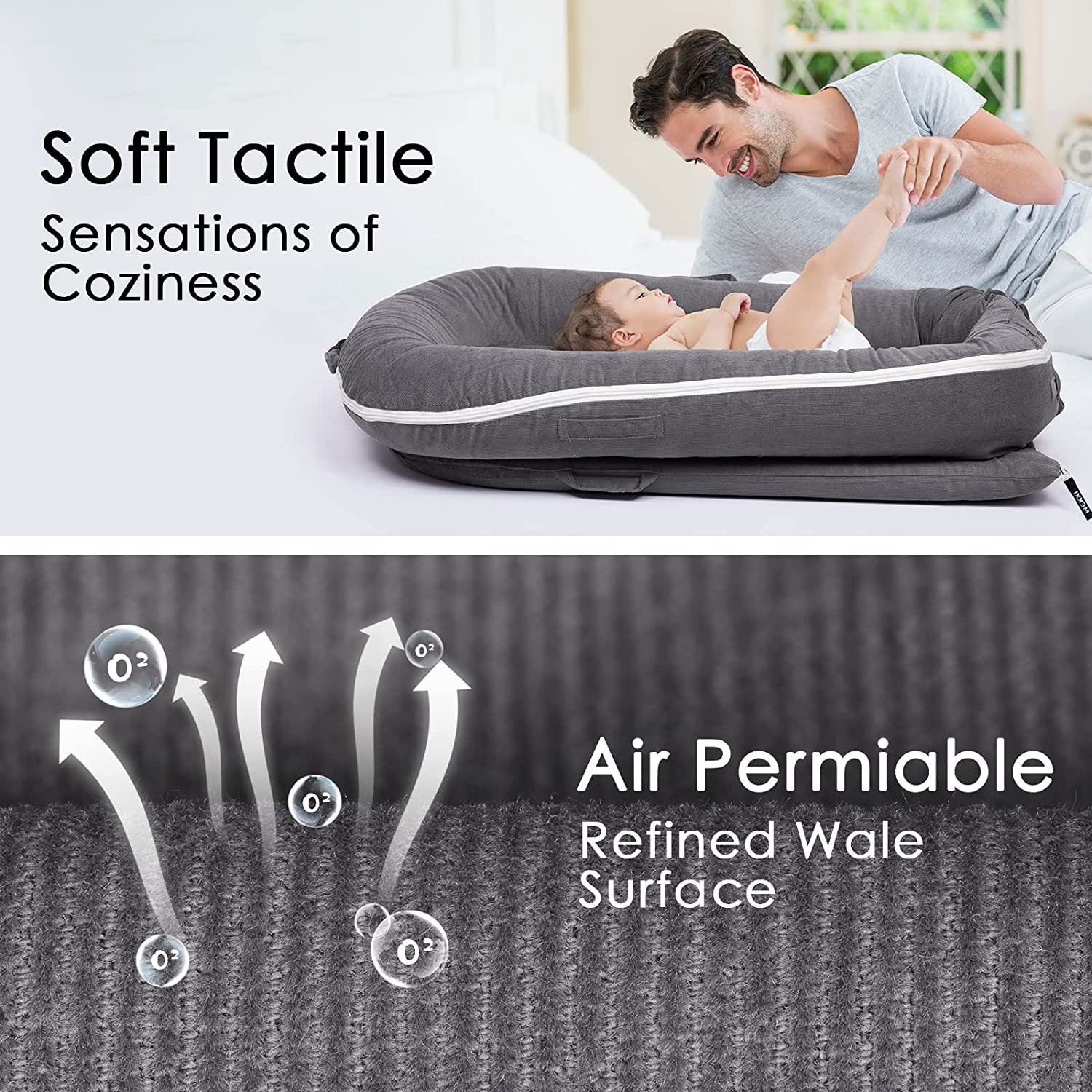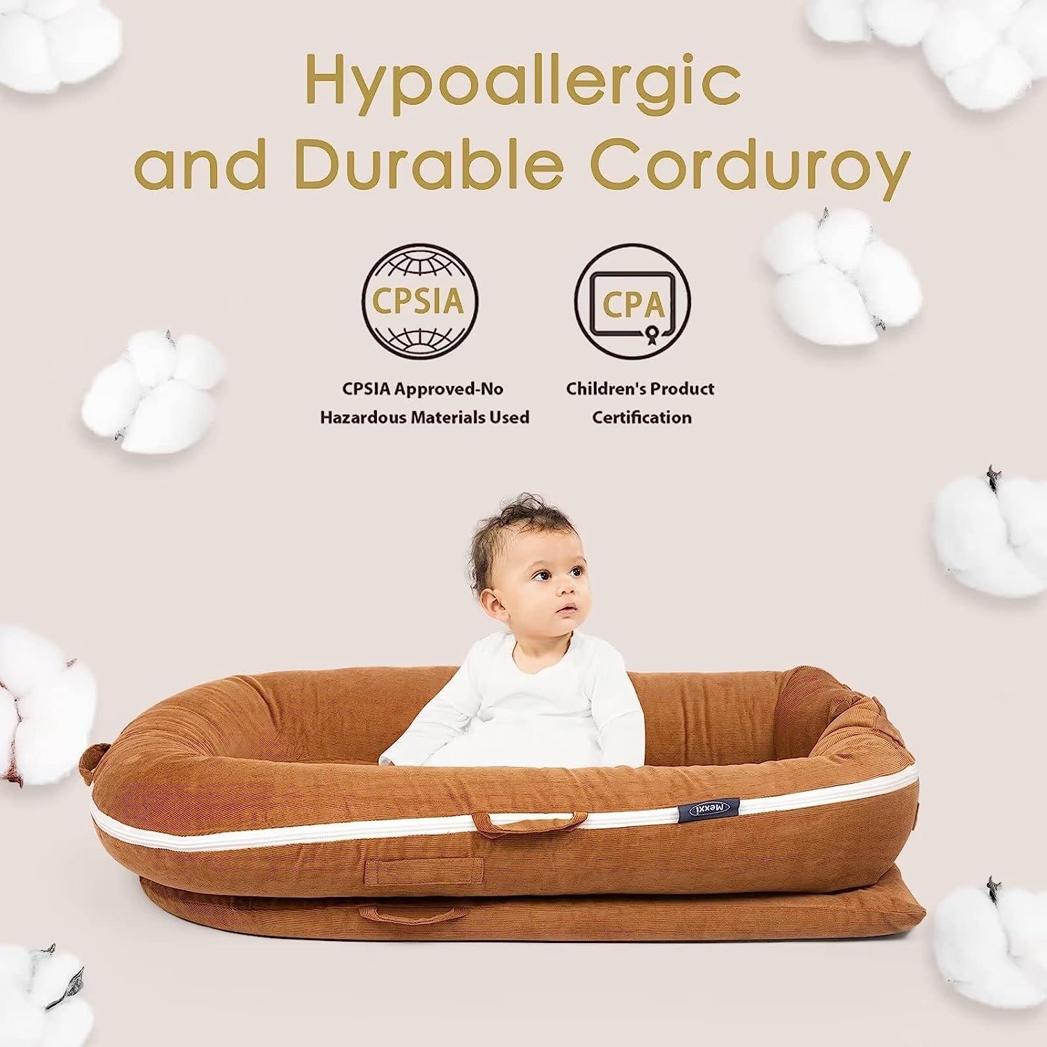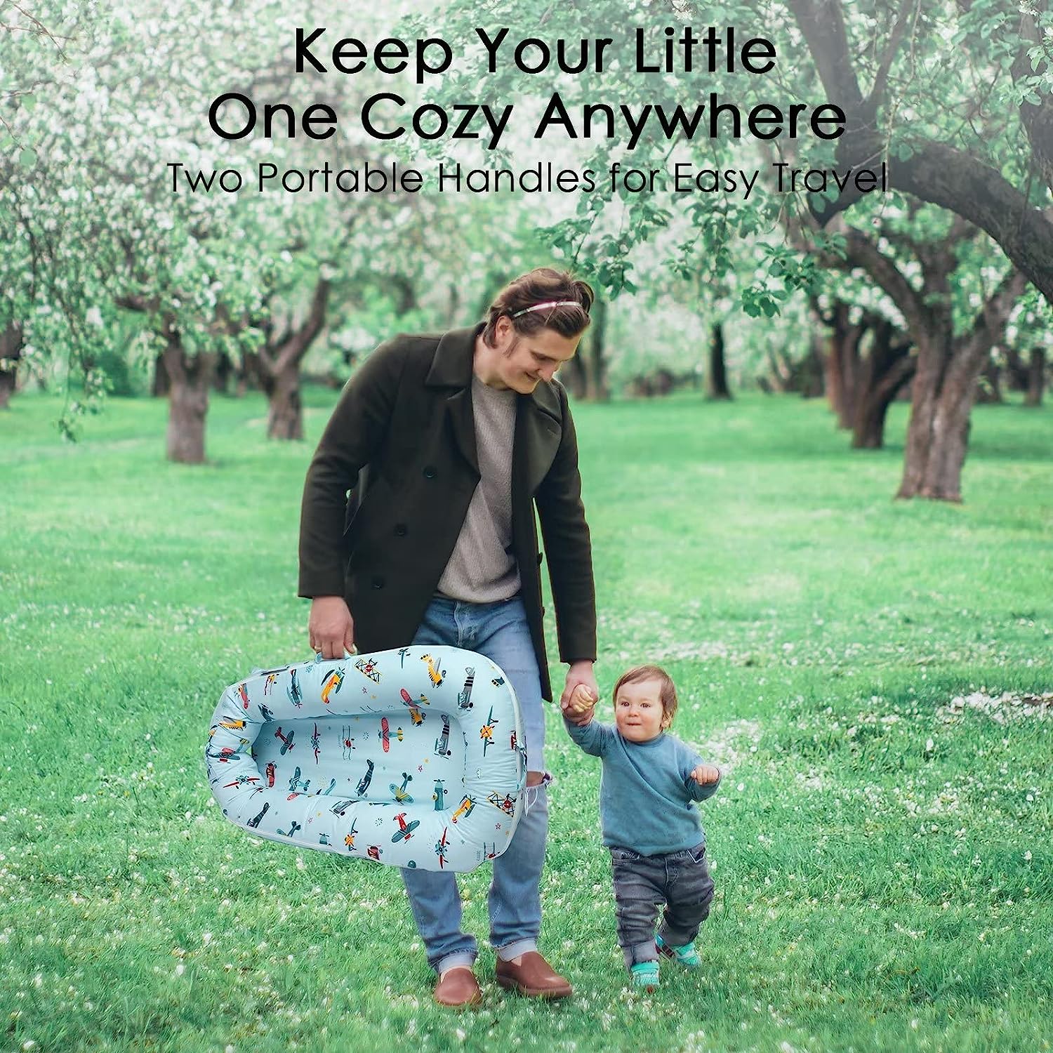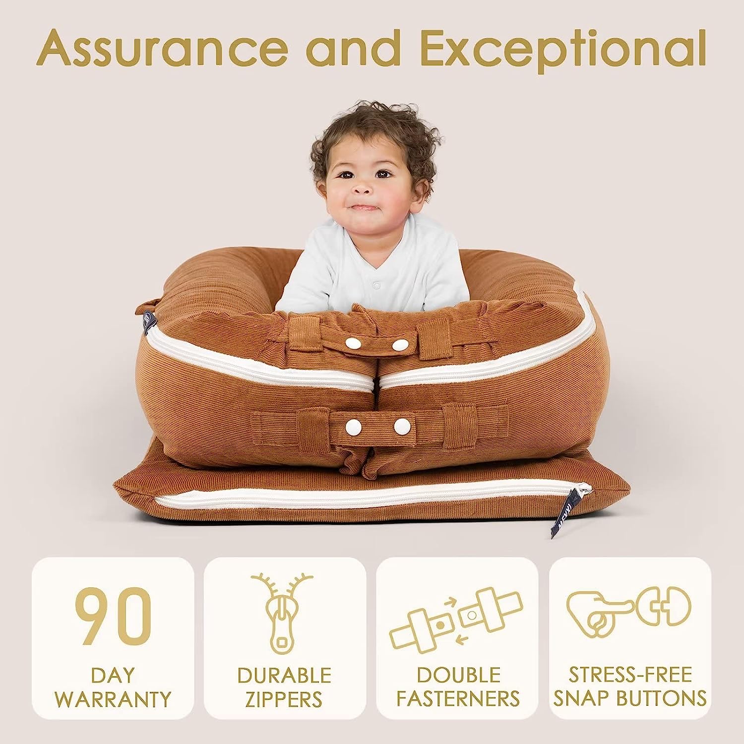 Having a couple of extra covers for your deluxe dock is a life saver. Our baby lounger cover perfectly fits your dock. Having handles on the sides makes it easy to carry the dock with you while you travel. 100% cotton and non-toxic fabric is used in the manufacturing process of our replacement covers. You do not have to worry about your child being exposed to harmful substances. Strong zippers and snap buttons will last for years to come.