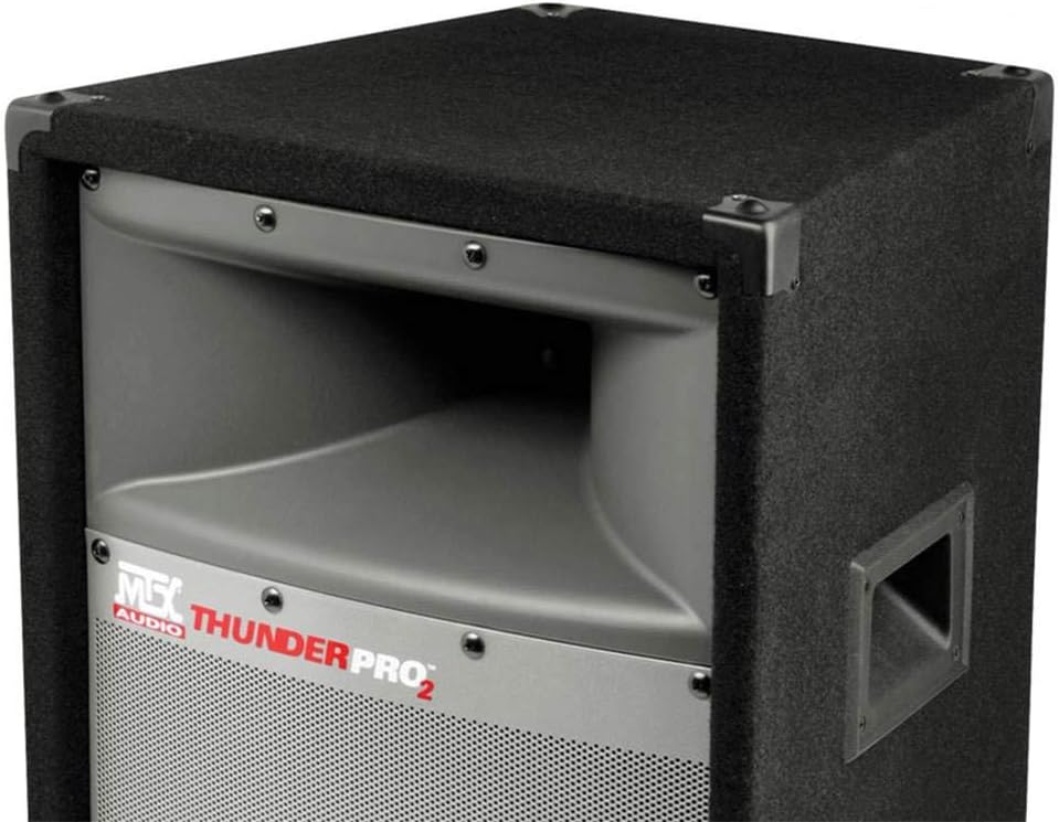 Perfect for concerts, jams, or parties at your home, the MTX TP1200 12-Inch Cabinet Tower Speaker brings professional audio equipment into your hands. Rated at 300 watts of peak power and 150 watts RMS, the speaker blasts powerful sound that rocks the concert hall. Bring out your band's sound, broadcast your favorite mixes, and raise your voice with the strong and powerful speaker tower. Featuring a 12-inch woofer that produces pounding bass and a 1-inch x radial horn loaded tweeter, the tower speaker gives you a full range of sound that is sure to impress your whole audience. Easily connecting to your amp or other system with 5-way binding posts and a 0.25-inch input, the speaker offers simple connections to your audio source. Rugged corner braces protect the durable MDF enclosure from knocks and drops, and the durable metal grille protects the speaker drivers from harm. Featuring integrated carrying handles, the speaker travels anywhere, perfect for bands and DJs who need their own quality setup. With a durable design and high-quality sound, upgrade your setup with the 12-Inch Cabinet Tower Speaker from MTX.