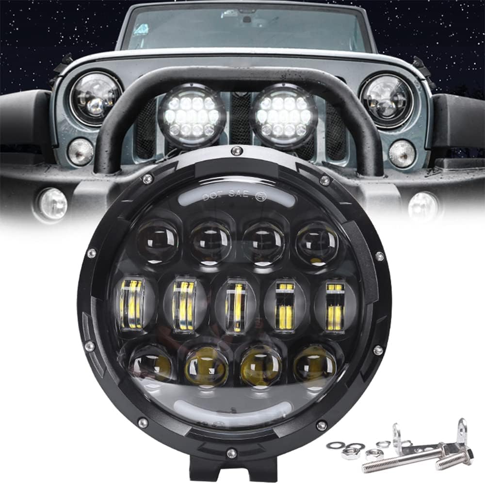 AUDEXEN LED Work Lights, 7 Inch 105W Round Spot LED Pods Light Bar High/Low Beam DRL with Adjustable Mounting Bracket Compatible with Jeep Off Road 4WD Truck SUV UTV ATV Driving Lamp, 2 PCS