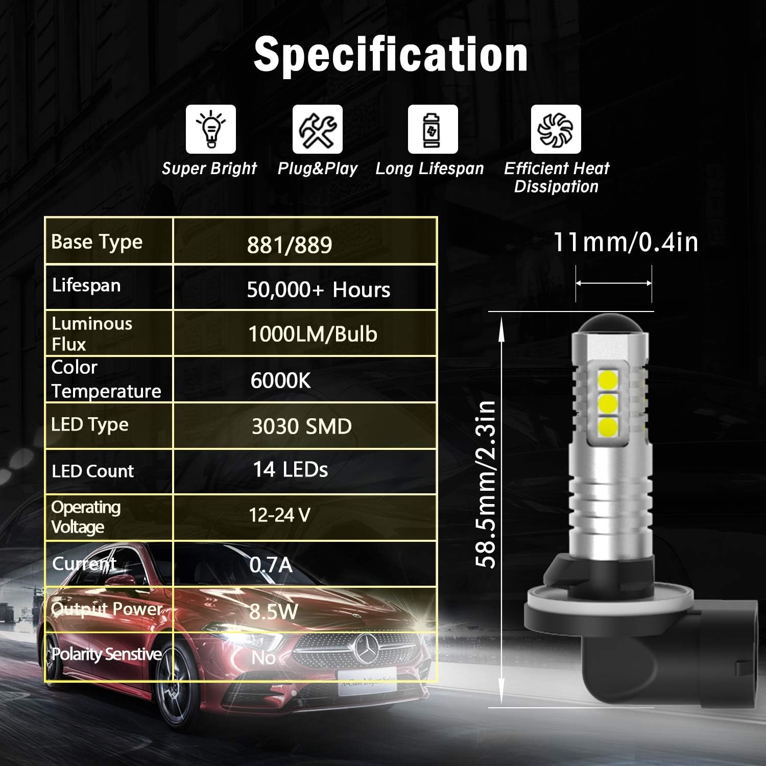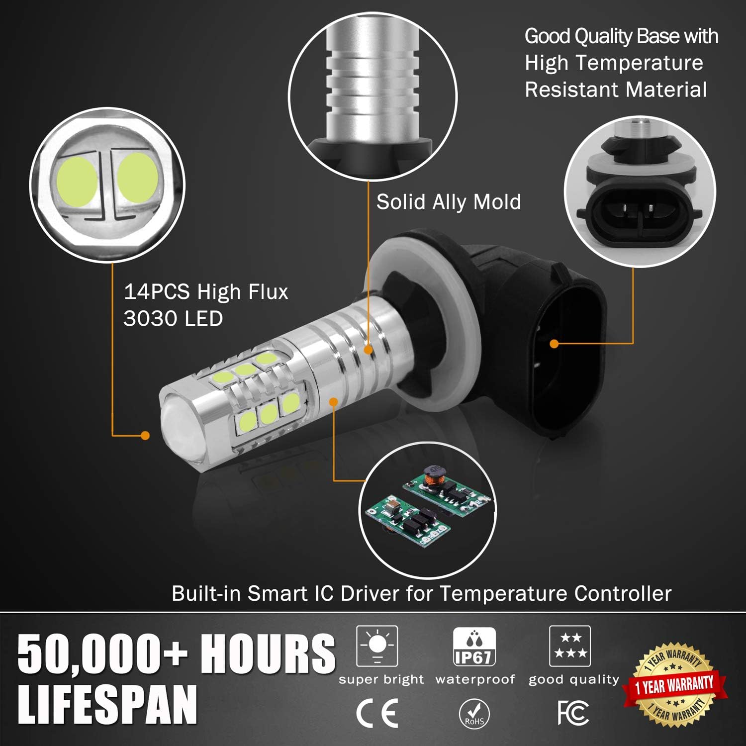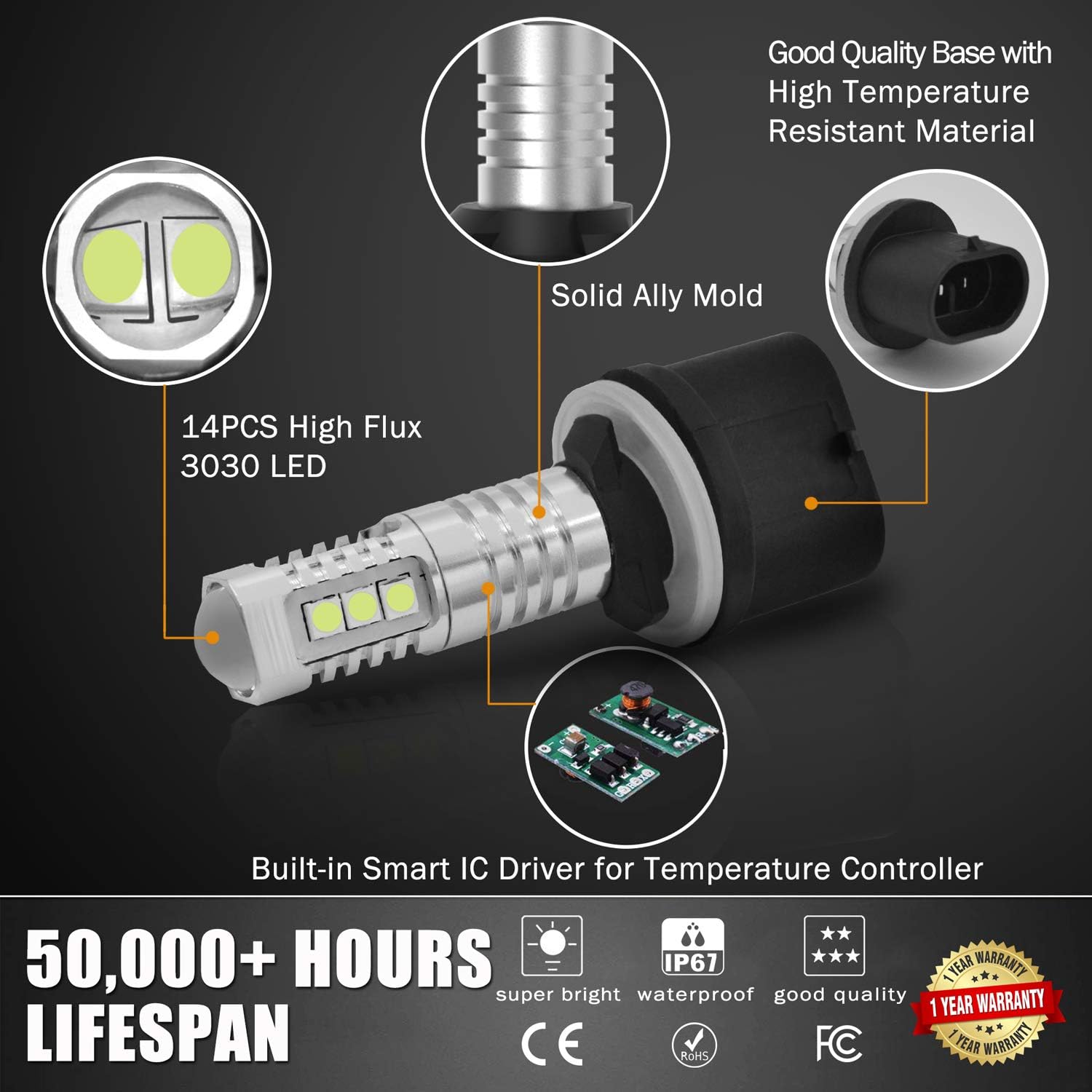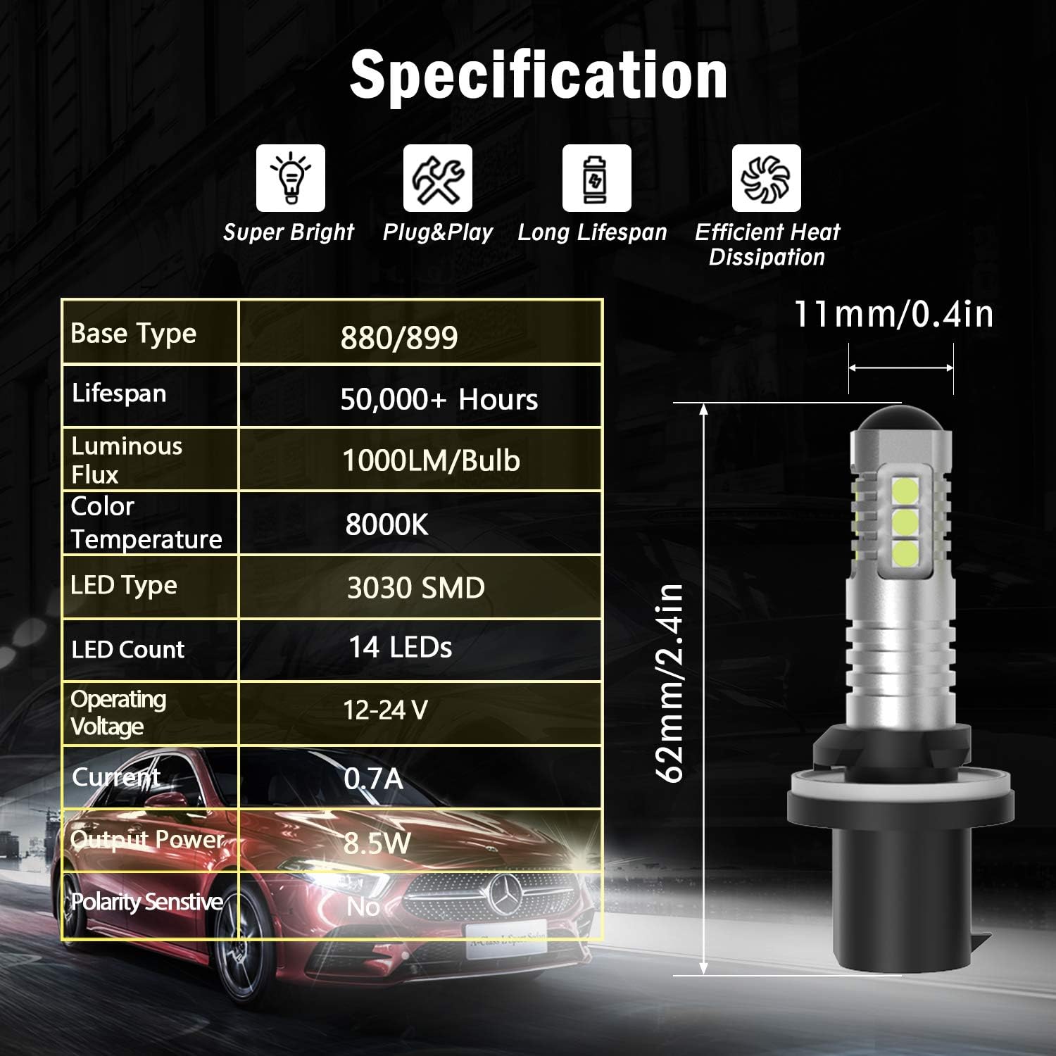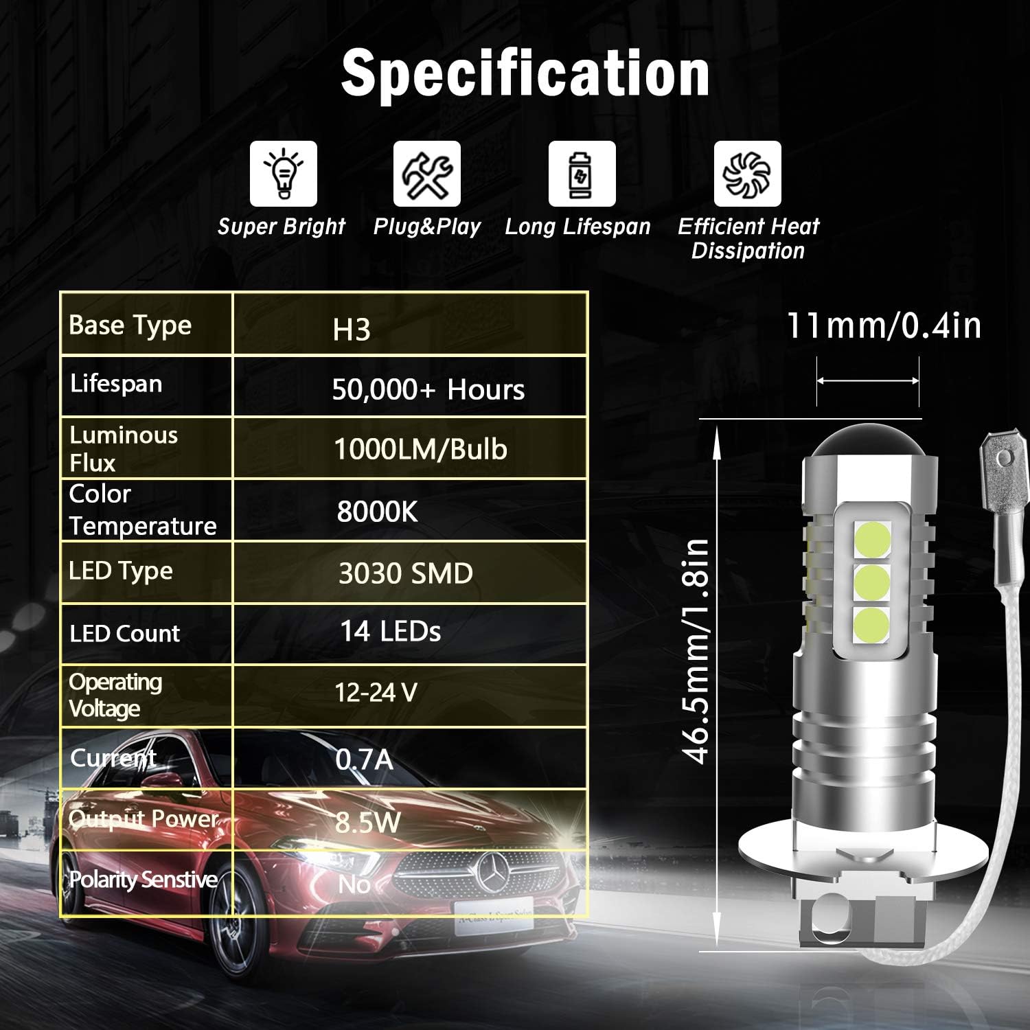 14-pieces high power 3030 LED chips per bulb with projector, this H3 LED bulb is 1000 lumens - 300% brighter than halogen bulb.