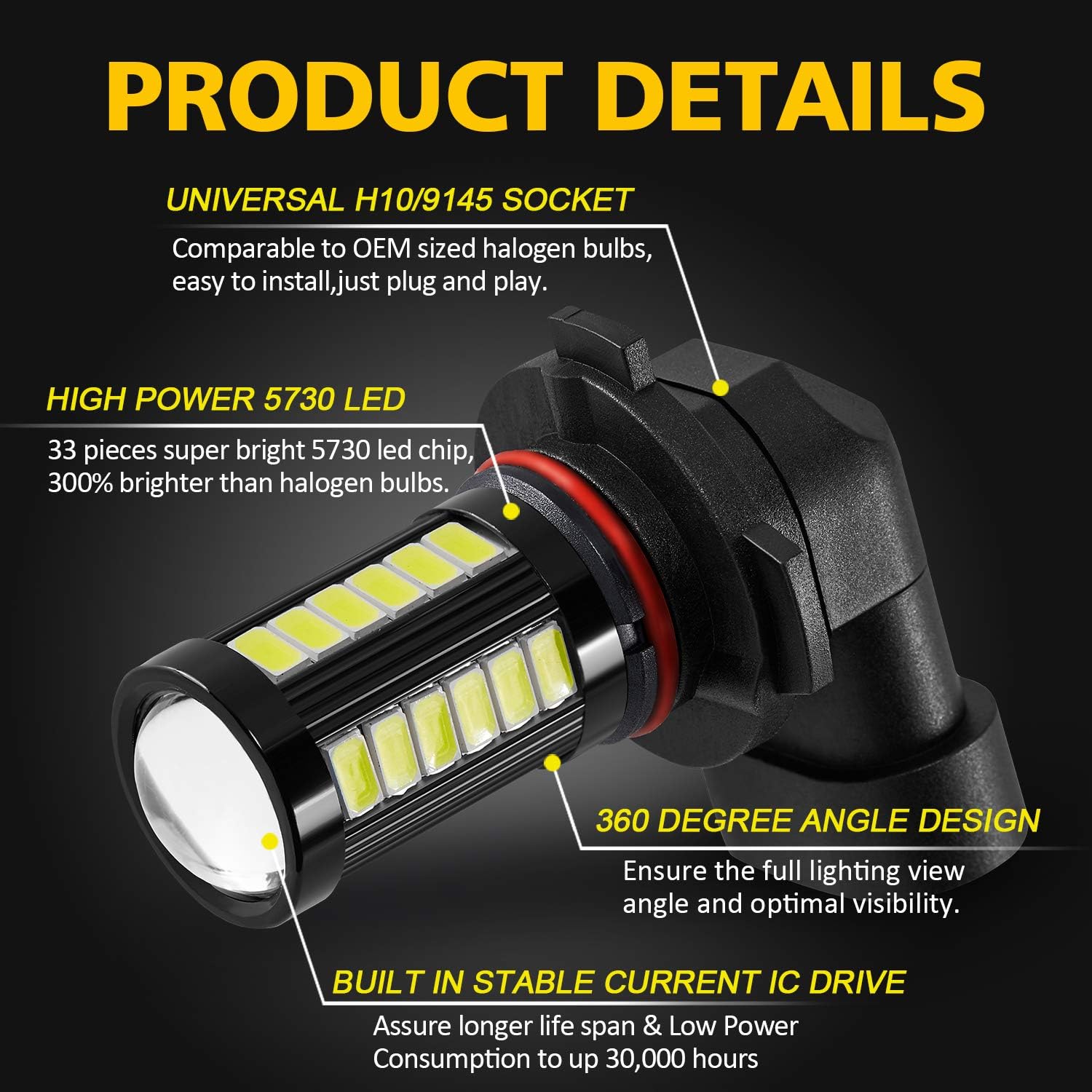 • ▼Extremely bright with good visibility: Each 2504 LED light bulb is equipped with 33 pieces 5730 LED chips, full aluminum housing with projection lens for better focusing light effect, 360 degree beam angle for maximum light output and further lighting distance. IP67 waterproof makes it work in any bad weather conditions, becoming the best choice for driving at rainy, fogy, or snowy days absolutely.